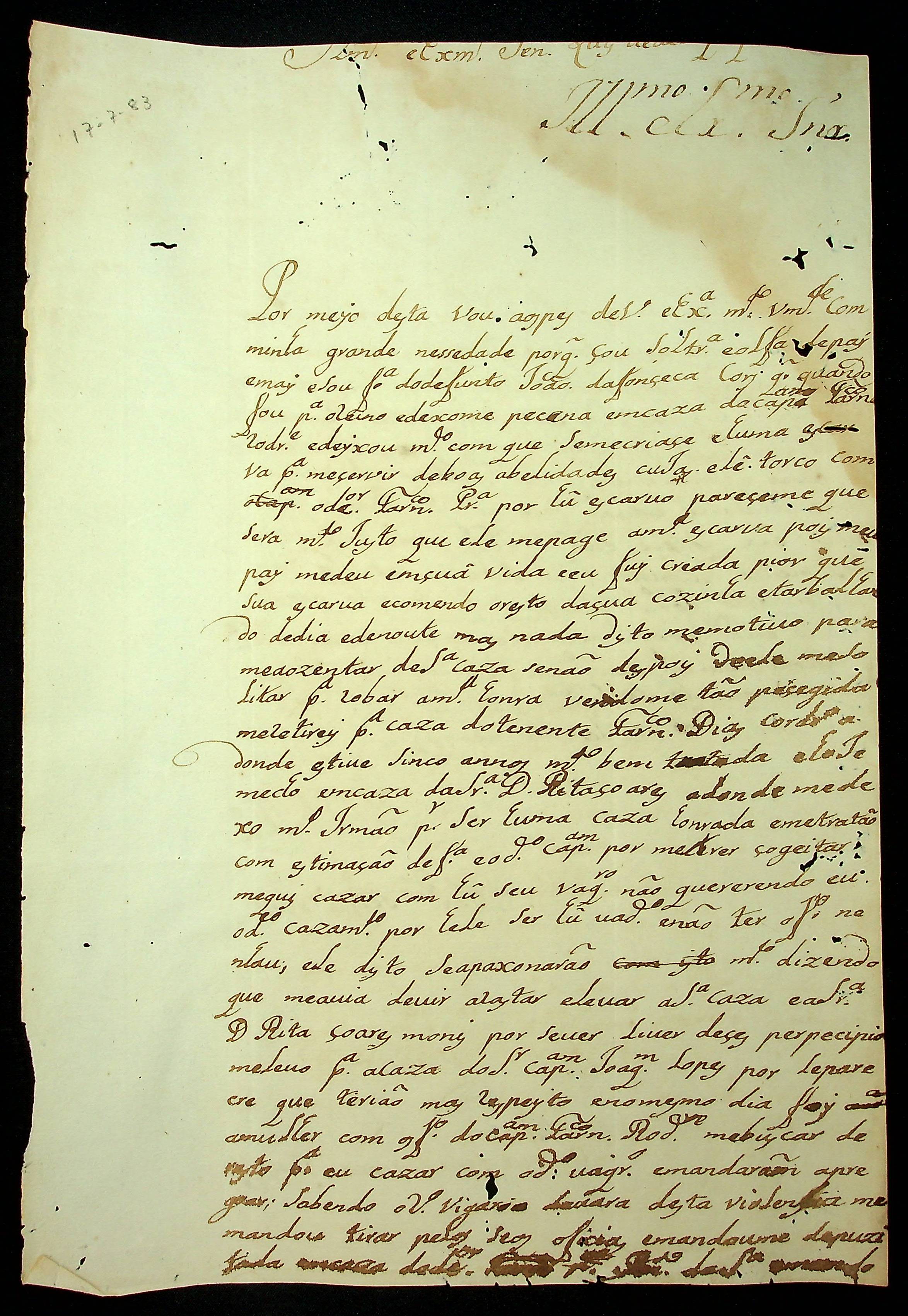 CARTA de Iria da Fonseca Cury ao [Governador e Capitão-General da Capitania de Mato Grosso Luiz de Albuquerque de Melo Pereira e Cáceres].