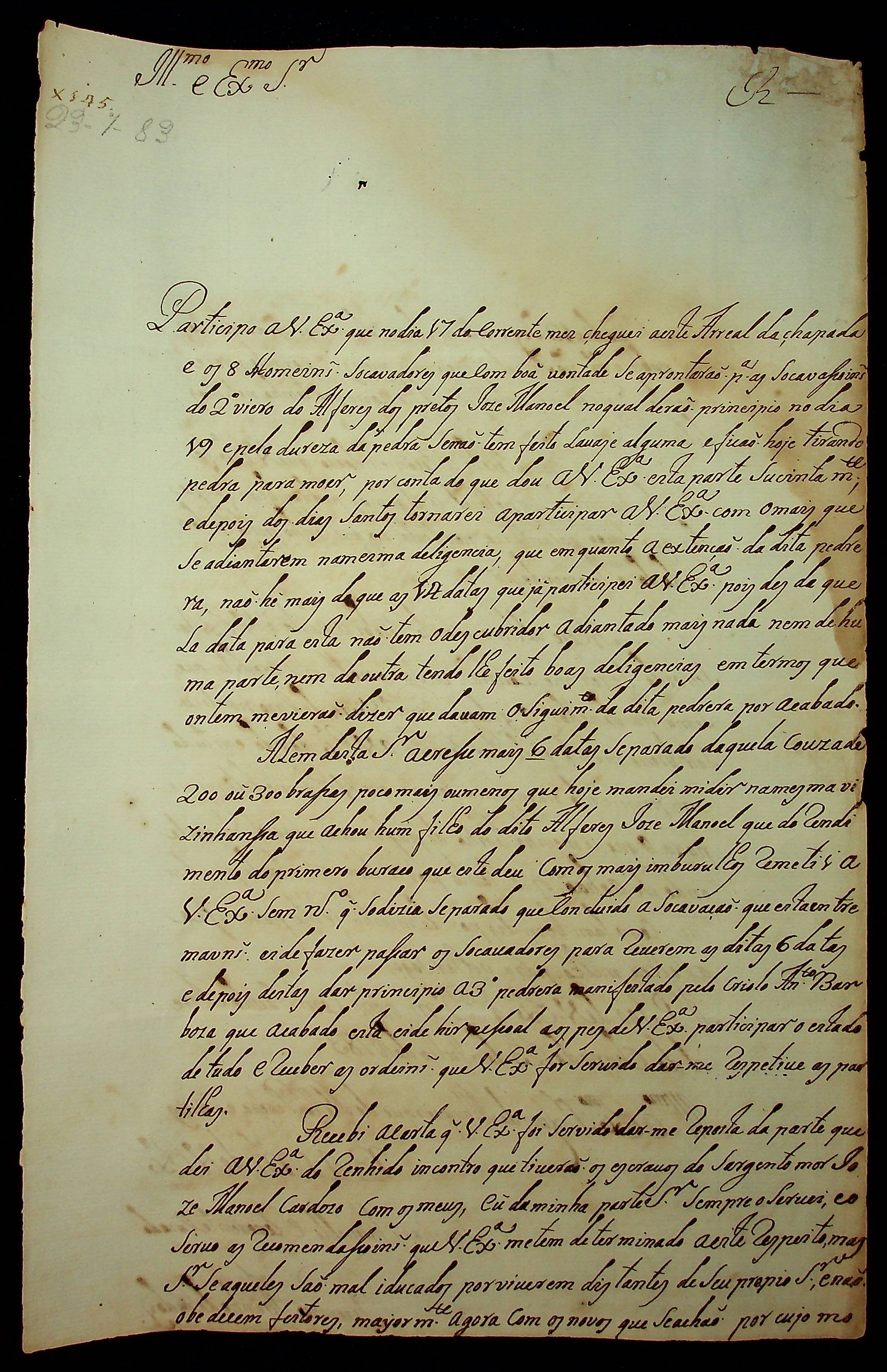 CARTA de Francisco Aranha de Godoy ao [Governador e Capitão-General da Capitania de Mato Grosso] Luiz de Albuquerque de Melo Pereira e Cáceres.