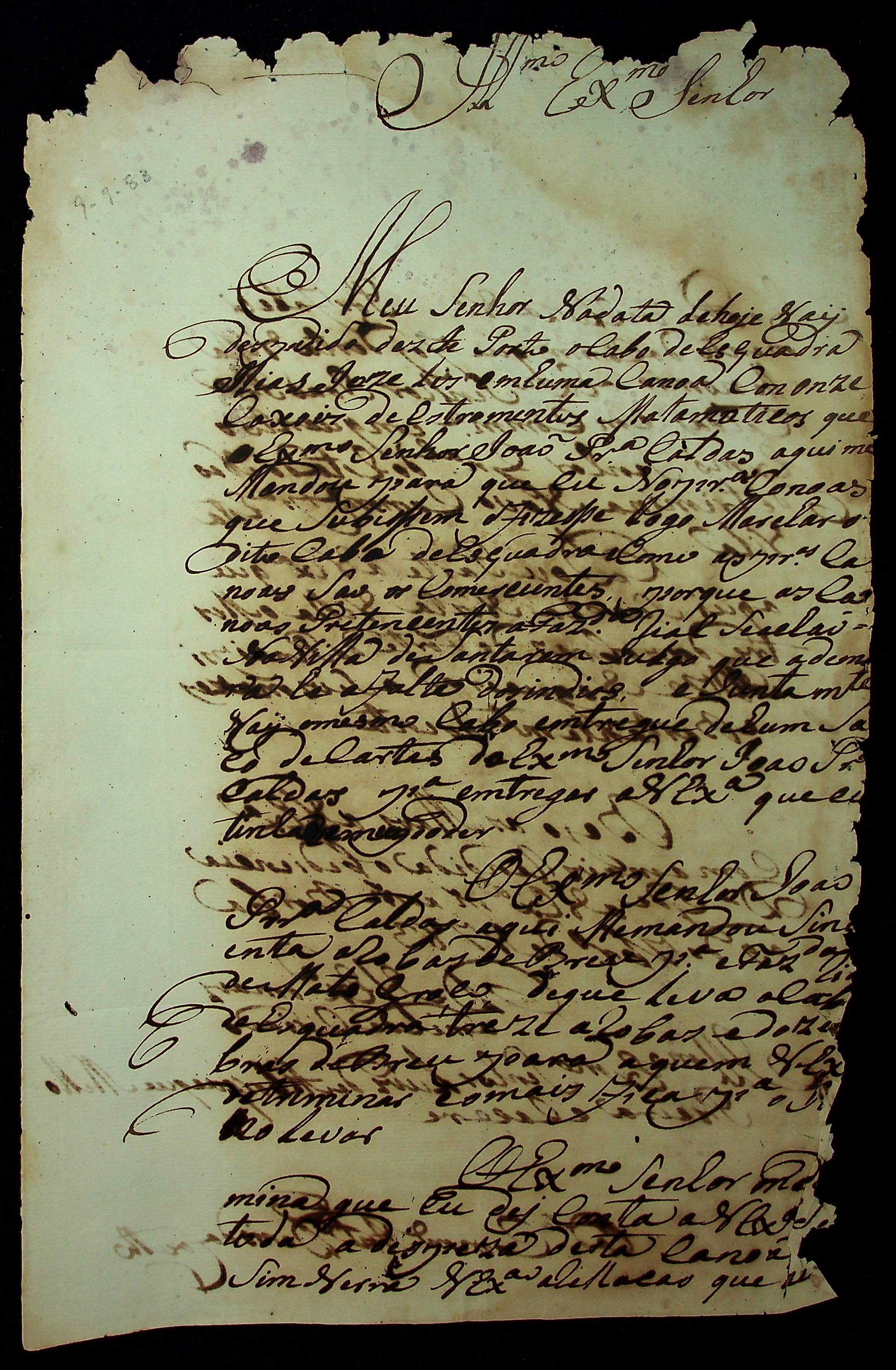 CARTA do Cadete Comandante Antônio Denis do Couto ao [Governador e Capitão-General da Capitania de Mato Grosso] Luiz de Albuquerque de Melo Pereira e Cáceres.