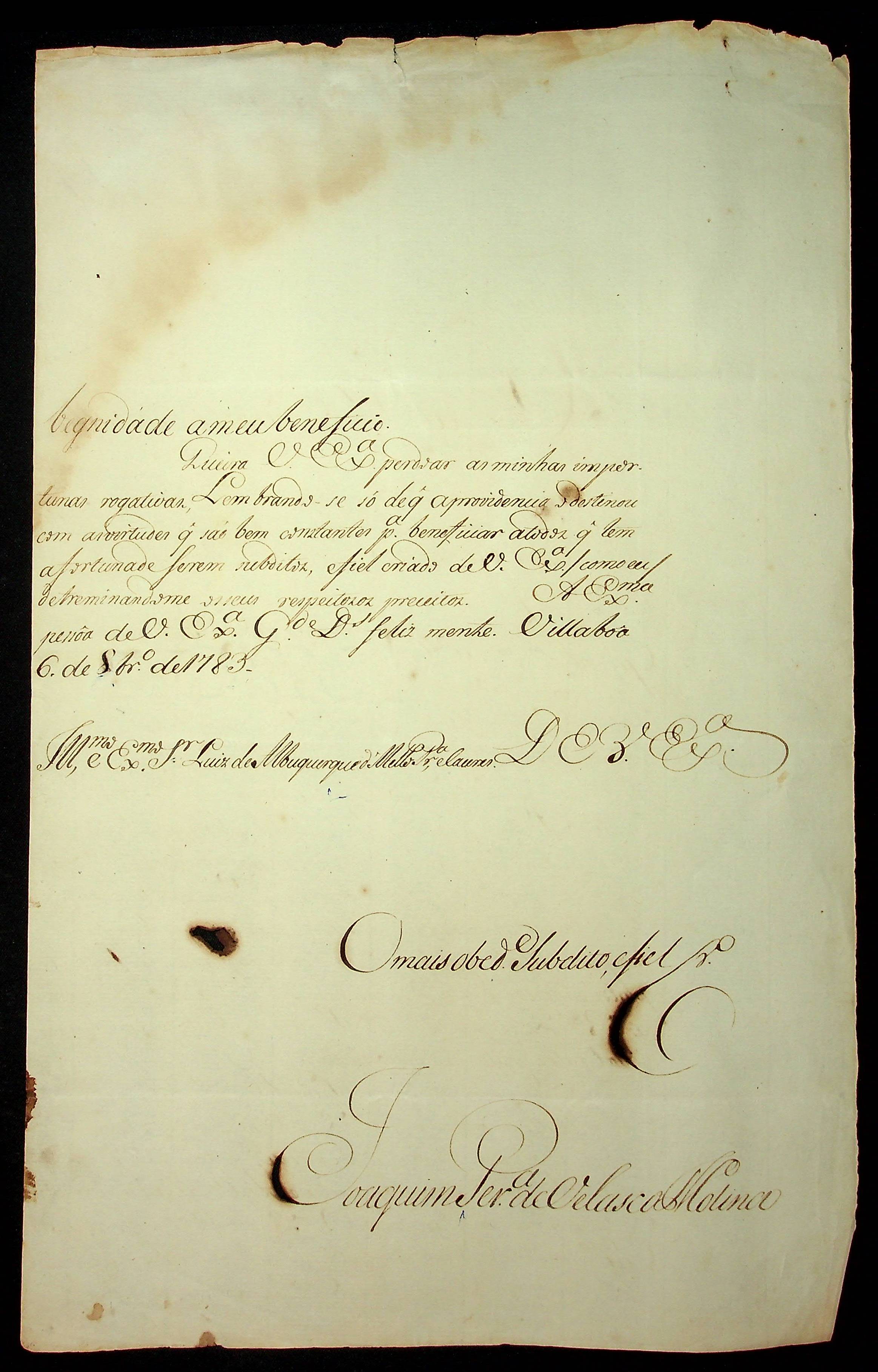 CARTA de Joaquim Pereira de Velasco Molina ao [Governador e Capitão-General da Capitania de Mato Grosso] Luiz de Albuquerque de Melo Pereira e Cáceres.