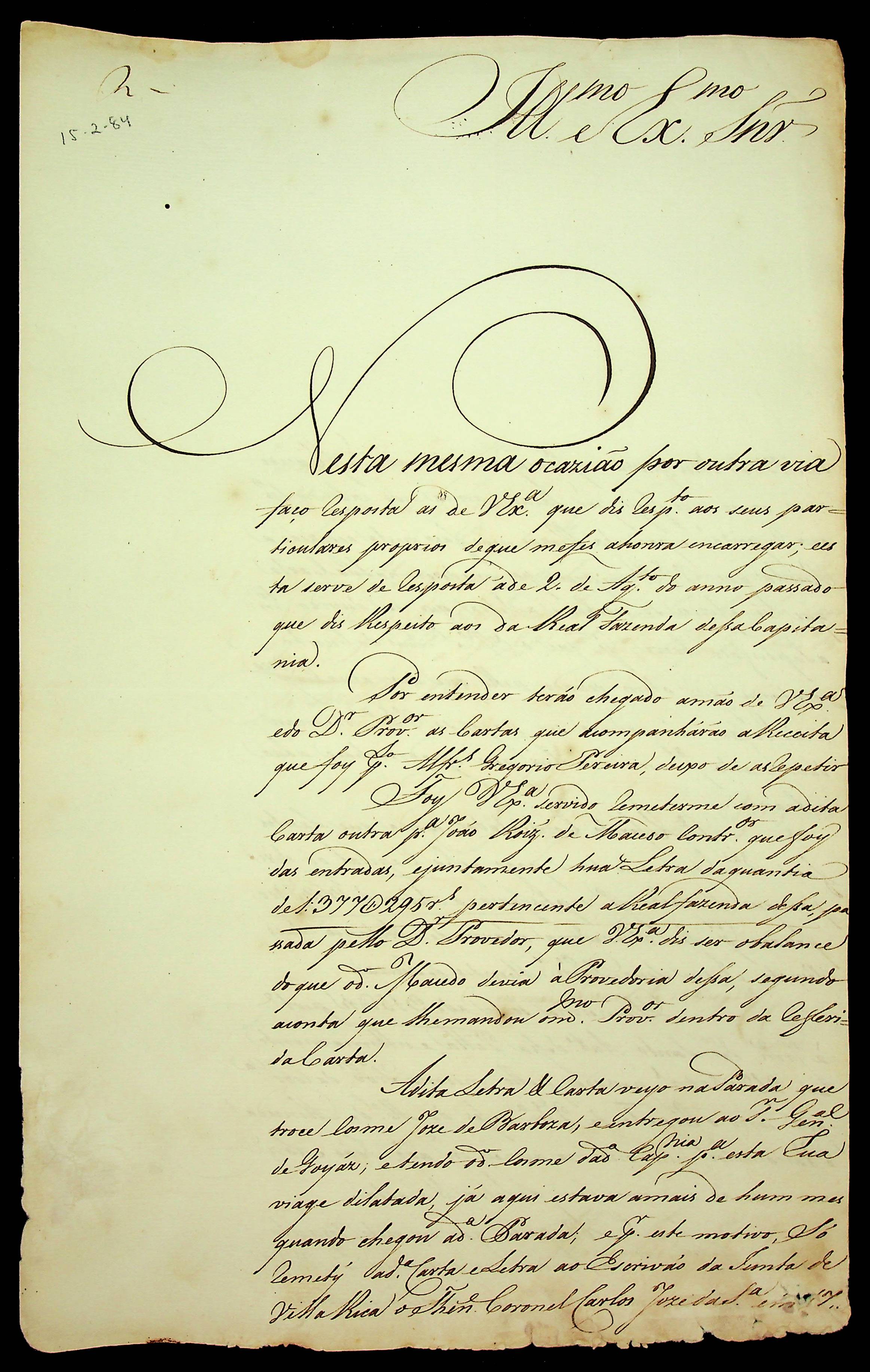 CARTA de Manoel da Costa Cardoso ao [Governador e Capitão-General da Capitania de Mato Grosso Luiz de Albuquerque de Melo Pereira e Cáceres].