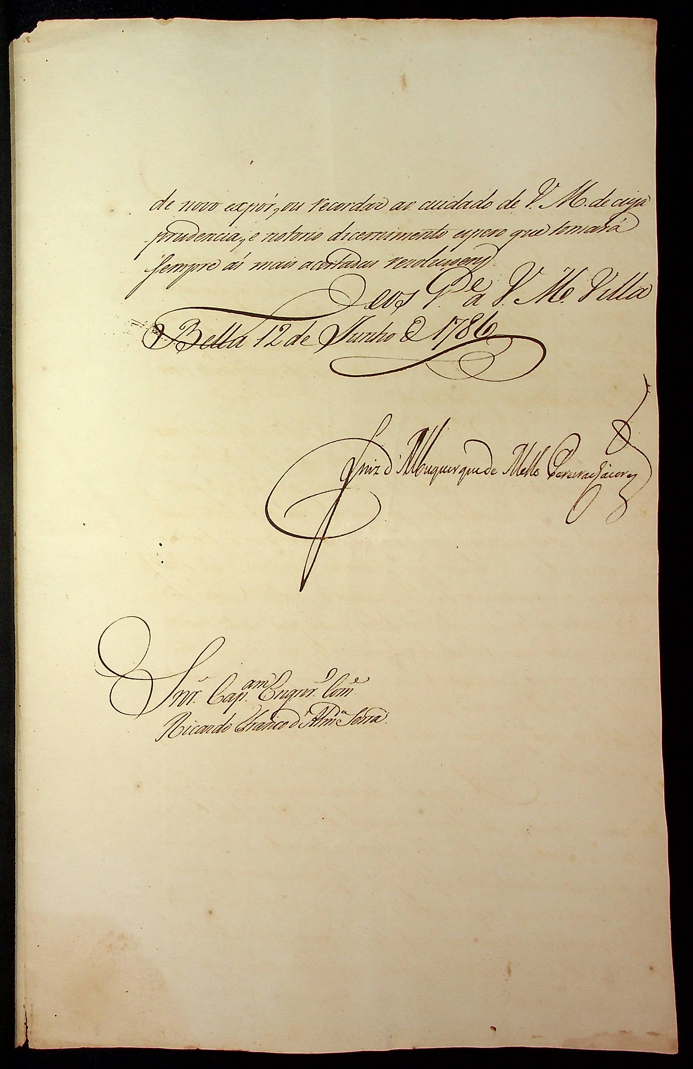 CARTA do [Governador e Capitão-General da Capitania de Mato Grosso] Luiz de Albuquerque de Melo Pereira e Cáceres ao Capitão-Engenheiro e Comandante Ricardo Franco de Almeida Serra.