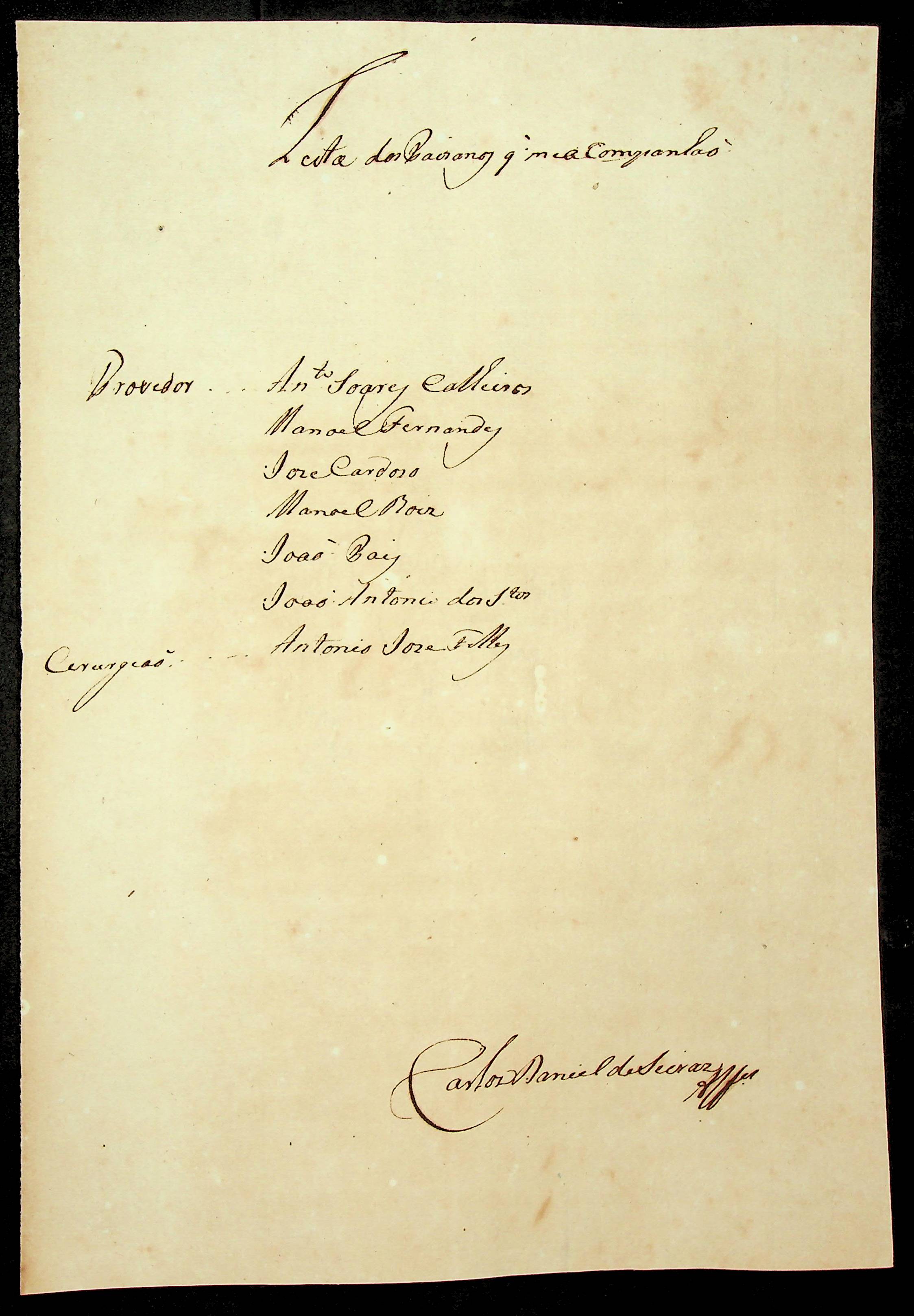 CARTA de Carlos Daniel Seixas ao [Governador e Capitão-General da Capitania de Mato Grosso] Luiz de Albuquerque de Melo Pereira e Cáceres.