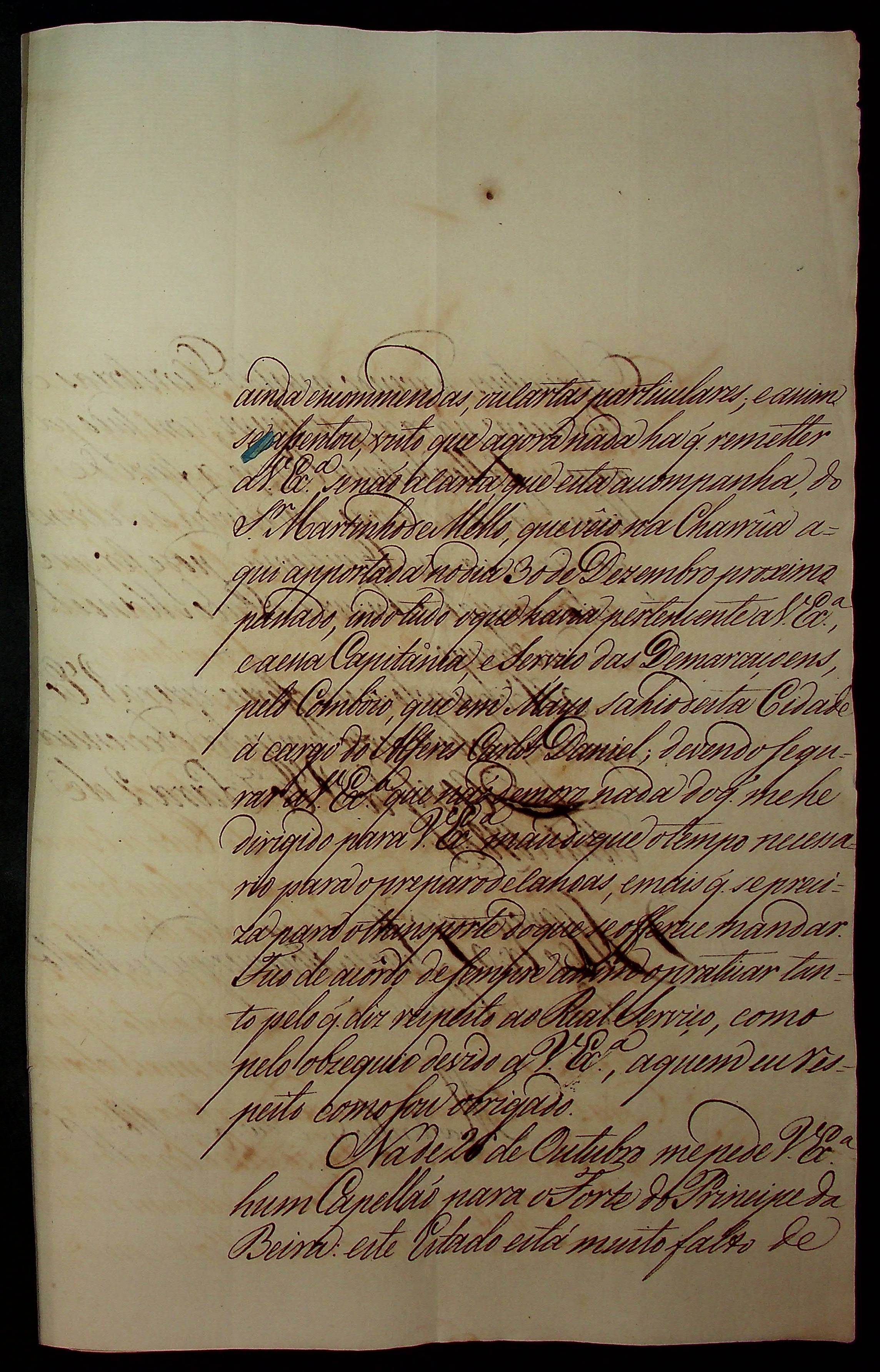 CARTA de Martinho de Souza Albuquerque ao [Governador e Capitão-General da Capitania de Mato Grosso] Luiz de Albuquerque de Melo Pereira e Cáceres.