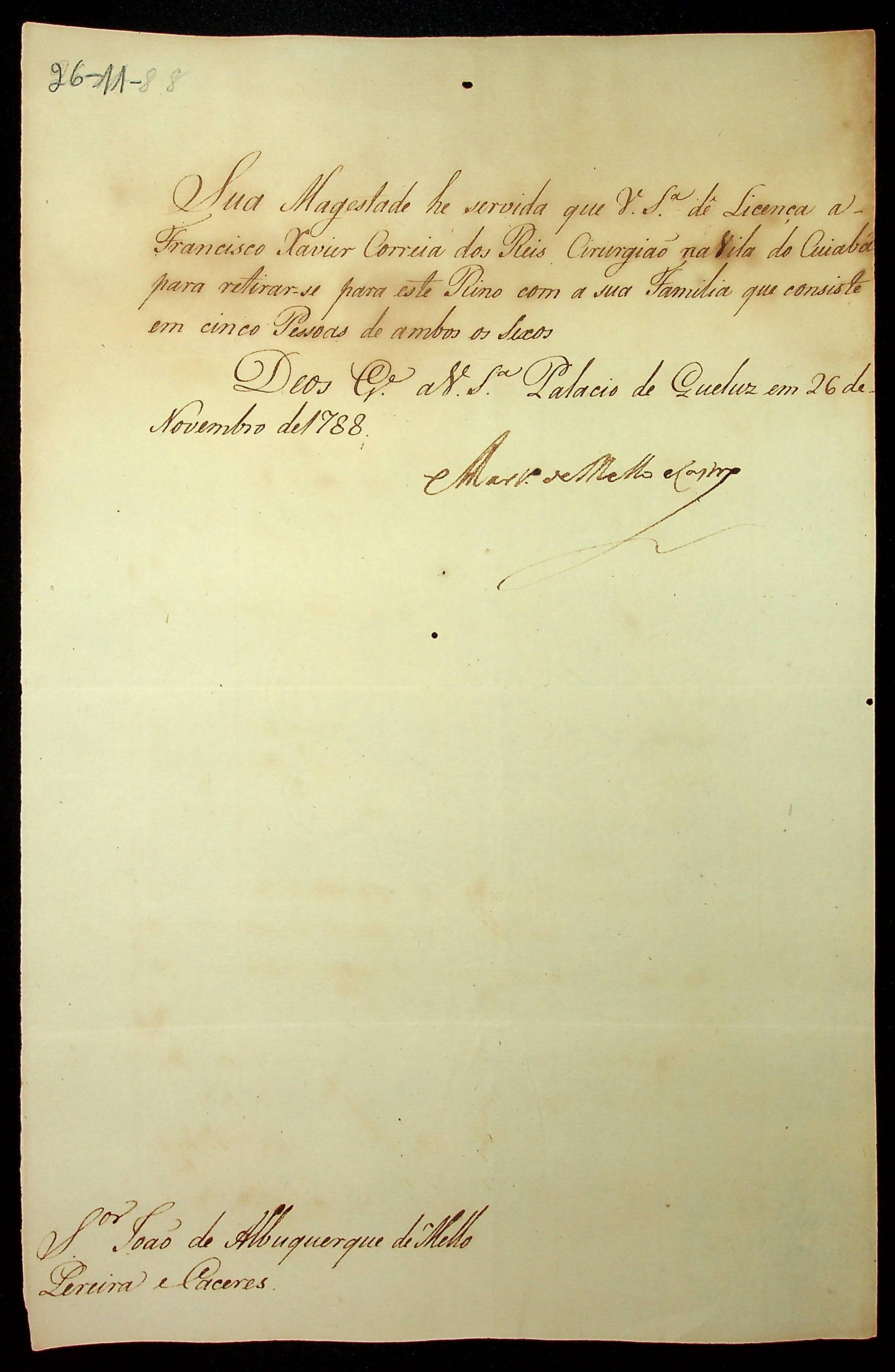 CARTA de Martinho de Melo e Castro [Secretário do Conselho Ultramar] ao [Governador e Capitão-General da Capitania de Mato Grosso] Luiz de Albuquerque de Melo Pereira e Cáceres.