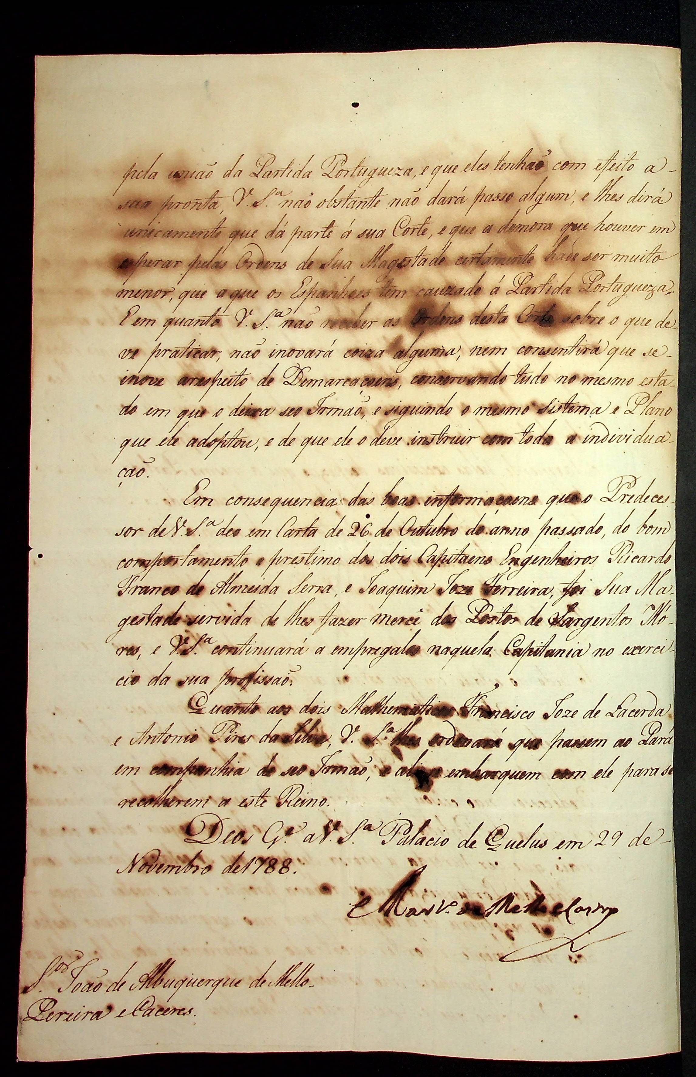 CARTA de Martinho de Melo e Castro [Secretário do Conselho Ultramar] ao [Governador e Capitão-General da Capitania de Mato Grosso] Luiz de Albuquerque de Melo Pereira e Cáceres.