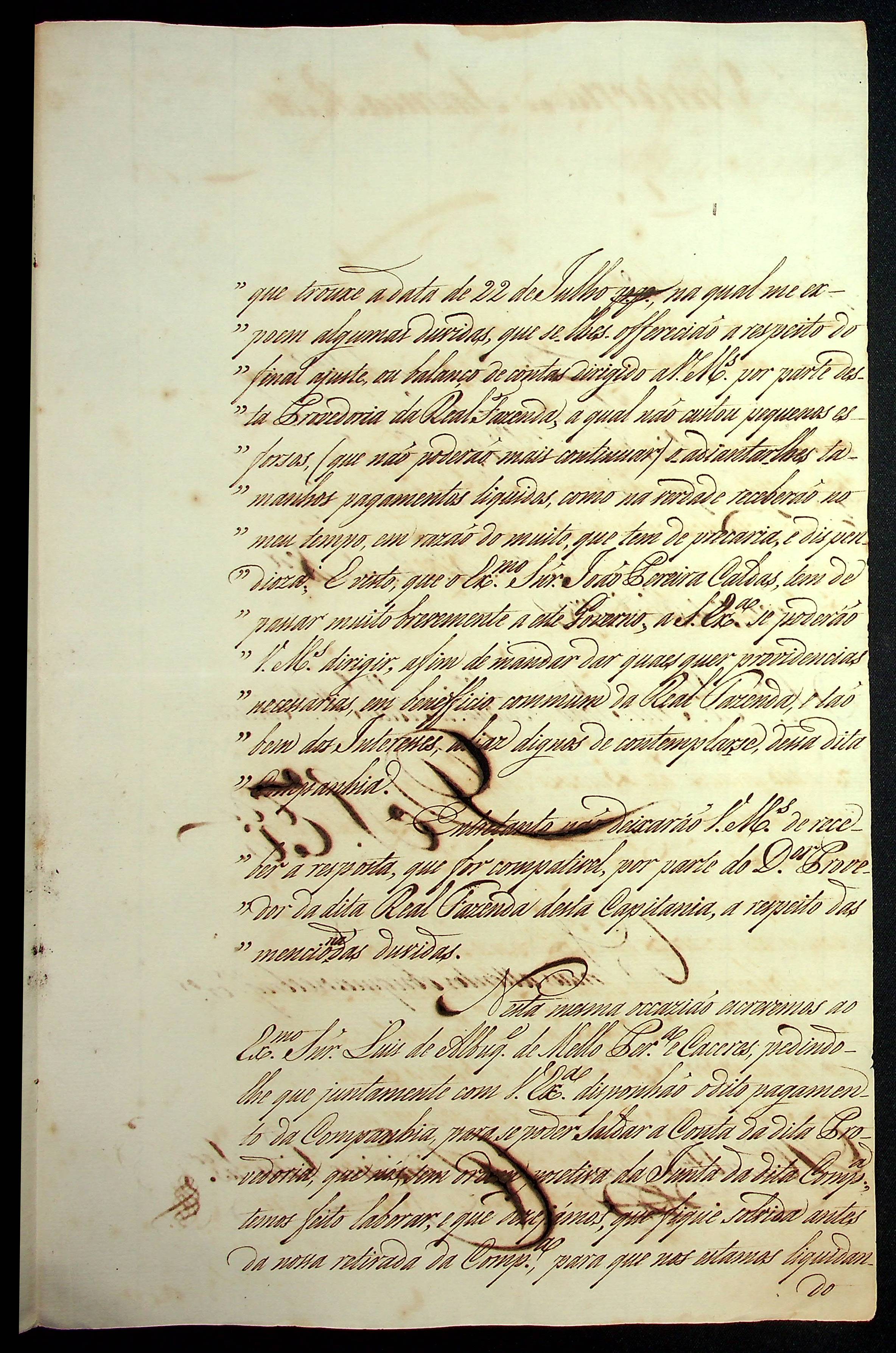 CARTA de Manoel José da Cunha e Dionizio Freitas Vasconcelos ao [Governador e Capitão-General da Capitania de Mato Grosso] Luiz de Albuquerque de Melo Pereira e Cáceres.