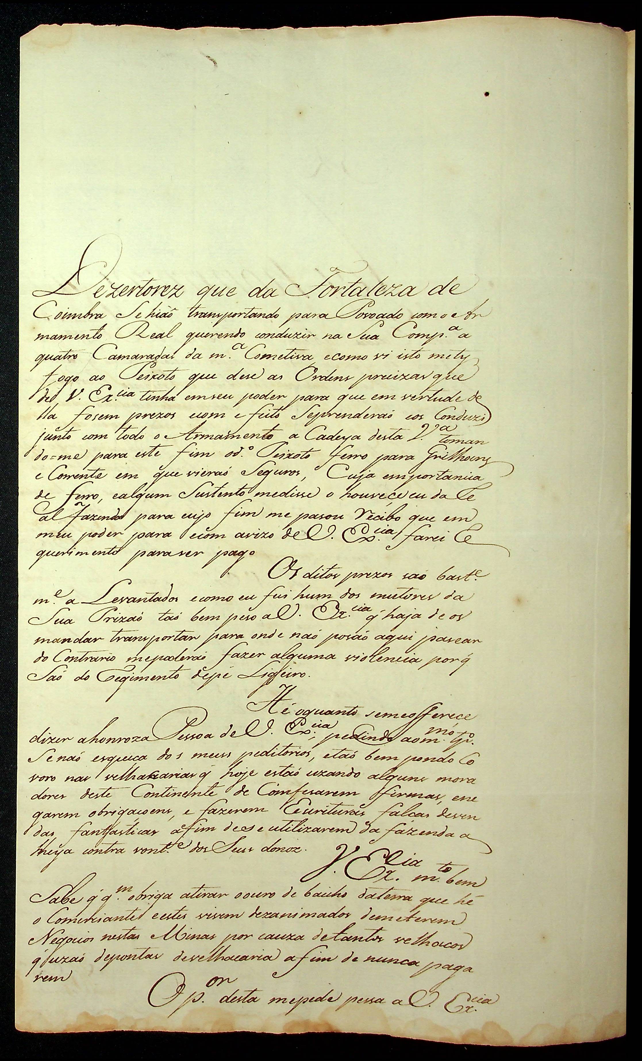 CARTA de Manoel Ventura Caldas ao Governador e Capitão-General da Capitania de Mato Grosso Luiz de Albuquerque de Melo Pereira e Cáceres.