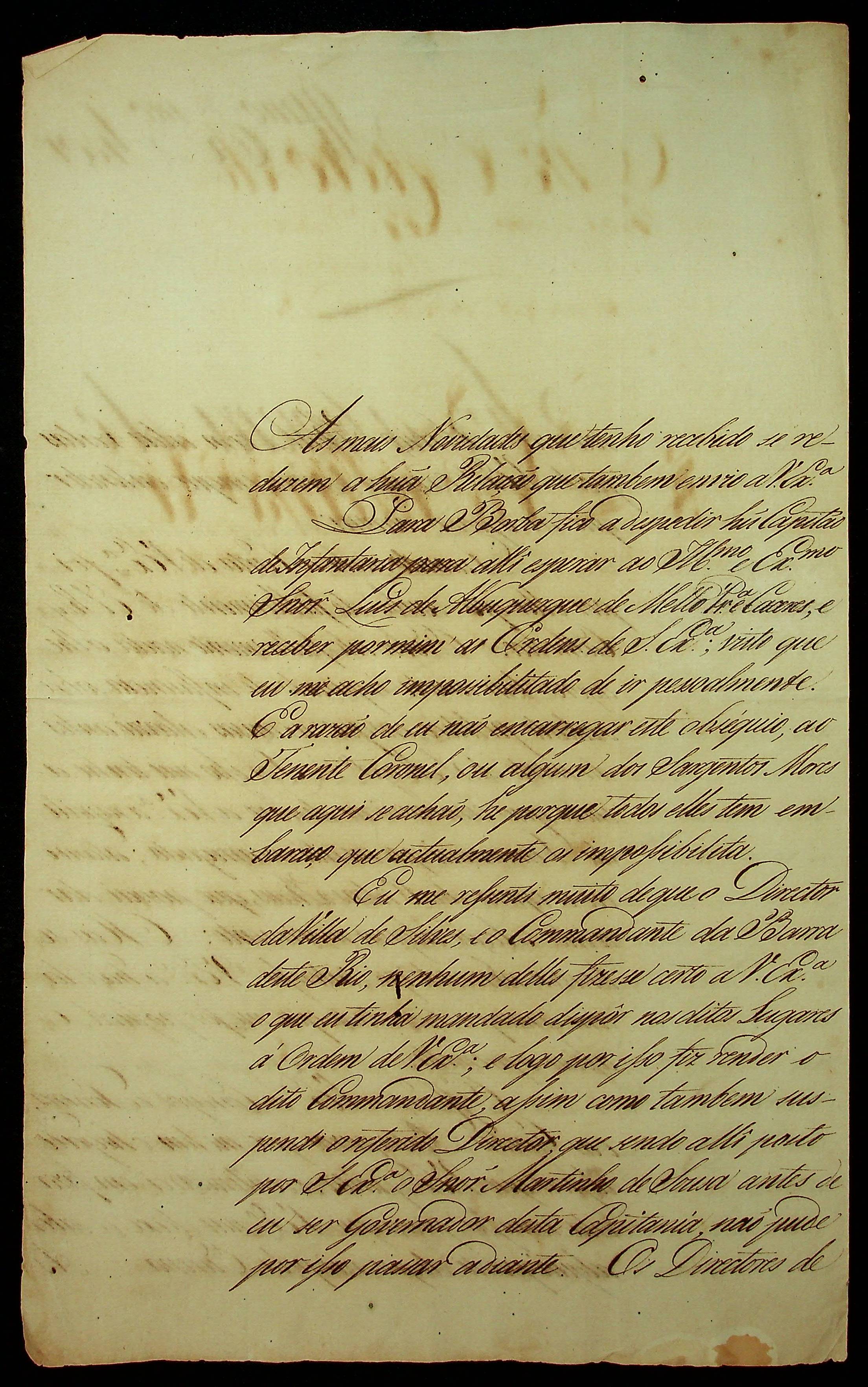 CARTA de Manoel da Gama Lobo d'Almada ao [Governador e Capitão-General da Capitania de Mato Grosso] Luiz de Albuquerque de Melo Pereira e Cáceres.