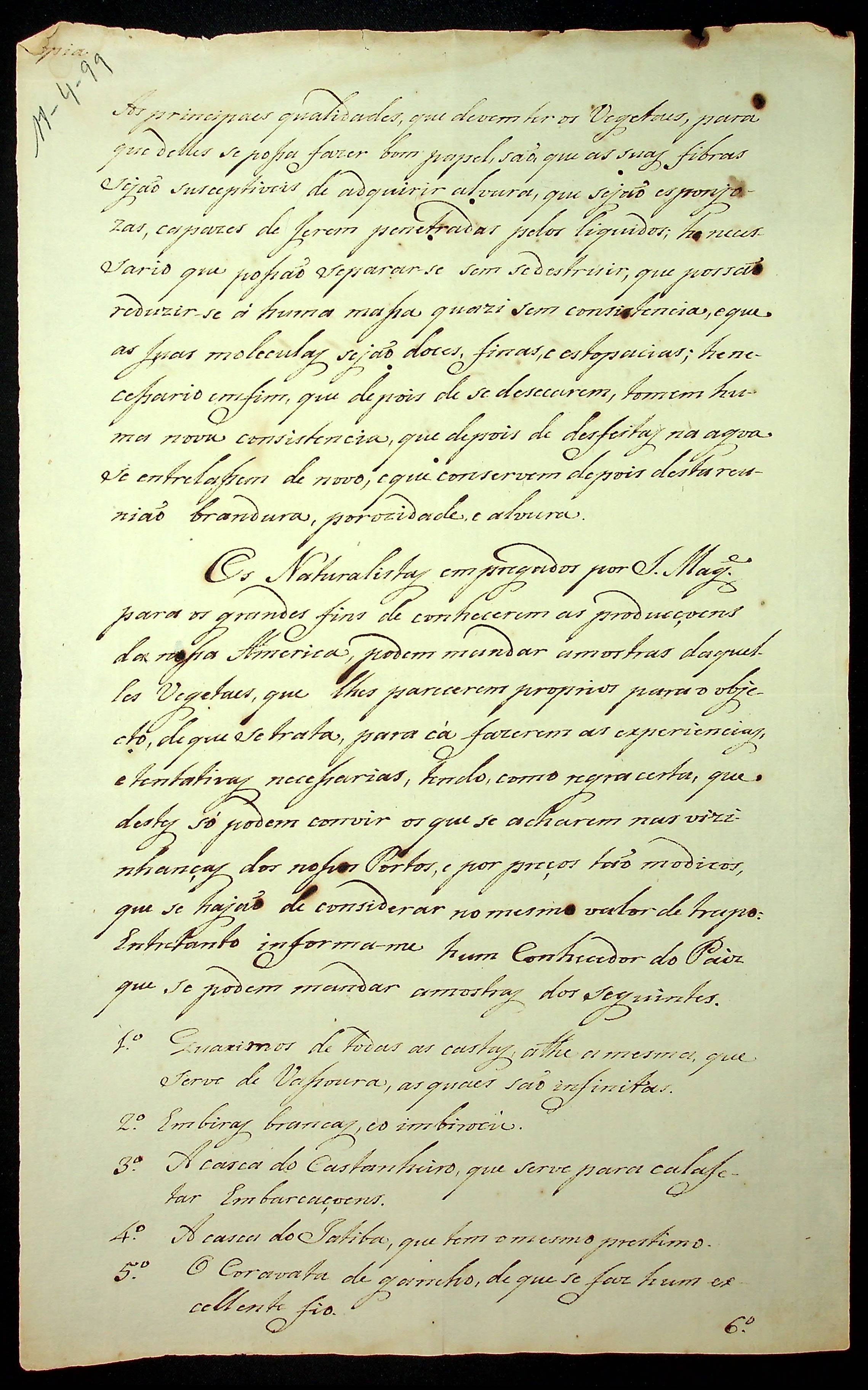 CARTA (Cópia) incompleta sobre os vegetais do Continente Americanos, sem data, destinatário e remetente.