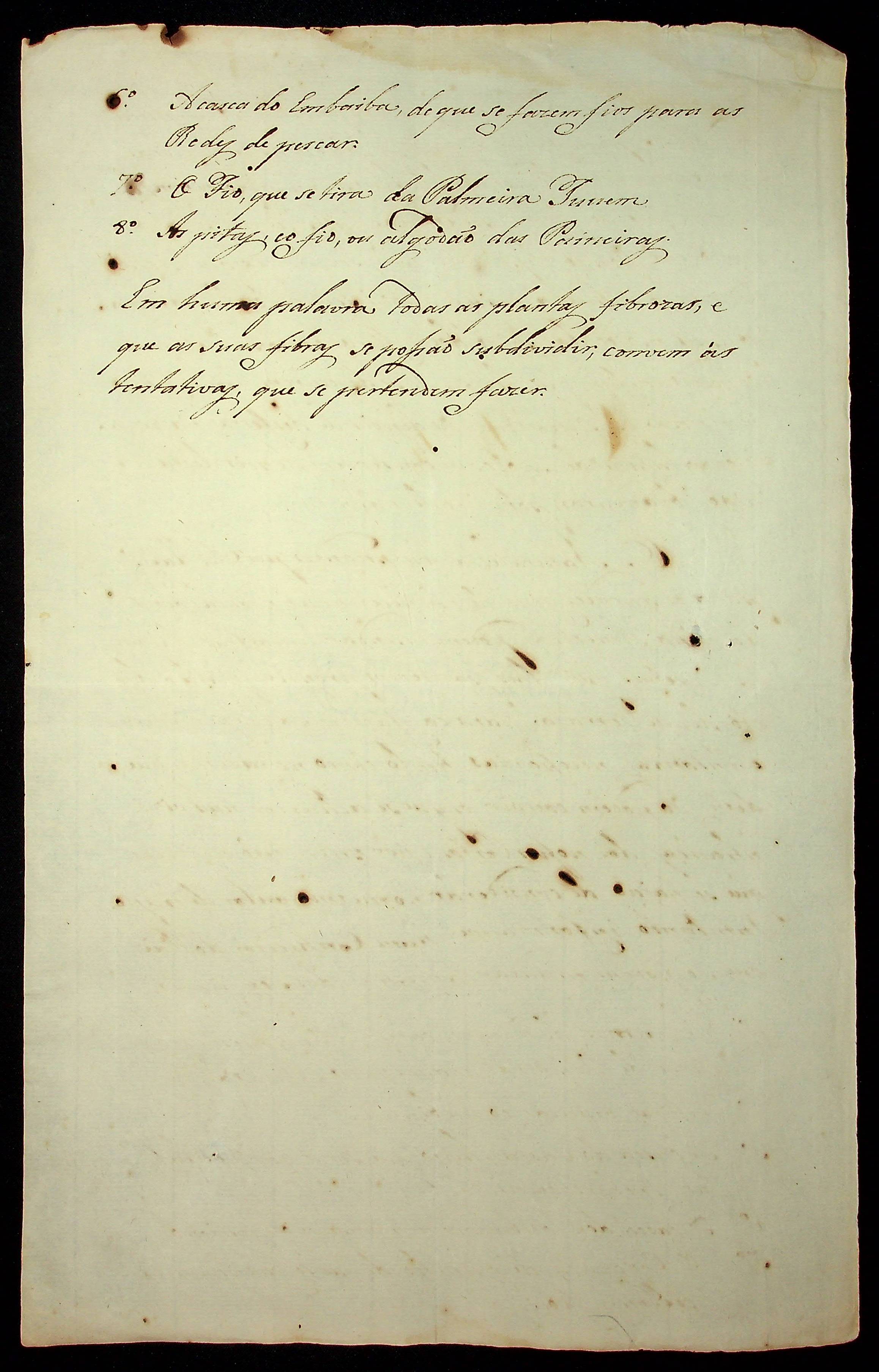 CARTA (Cópia) incompleta sobre os vegetais do Continente Americanos, sem data, destinatário e remetente.