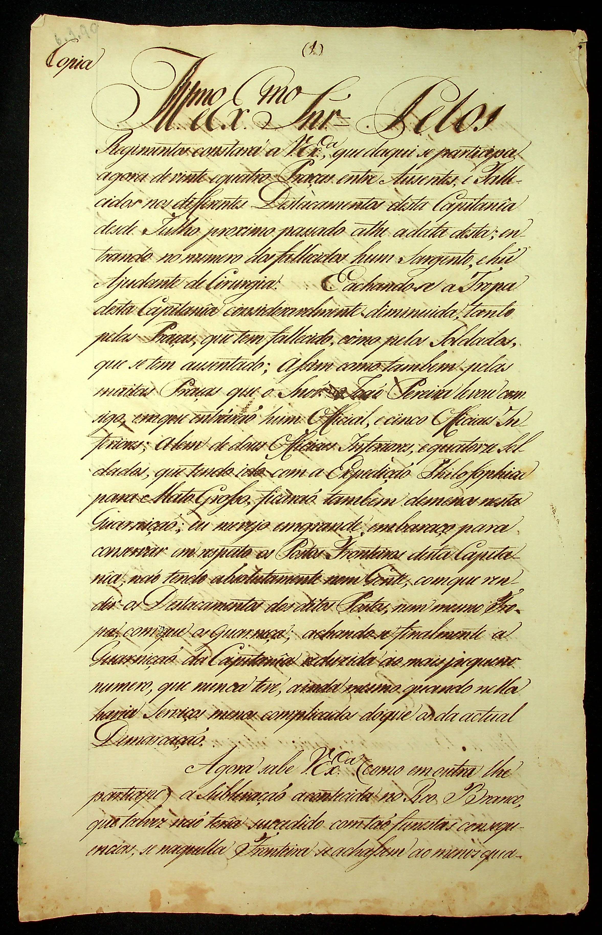 CARTA (cópia) de Manoel da Gama Lobo de Almada ao [Governador e Capitão-General da Capitania do Grão-Pará e Maranhão] Martinho de Souza de Albuquerque.