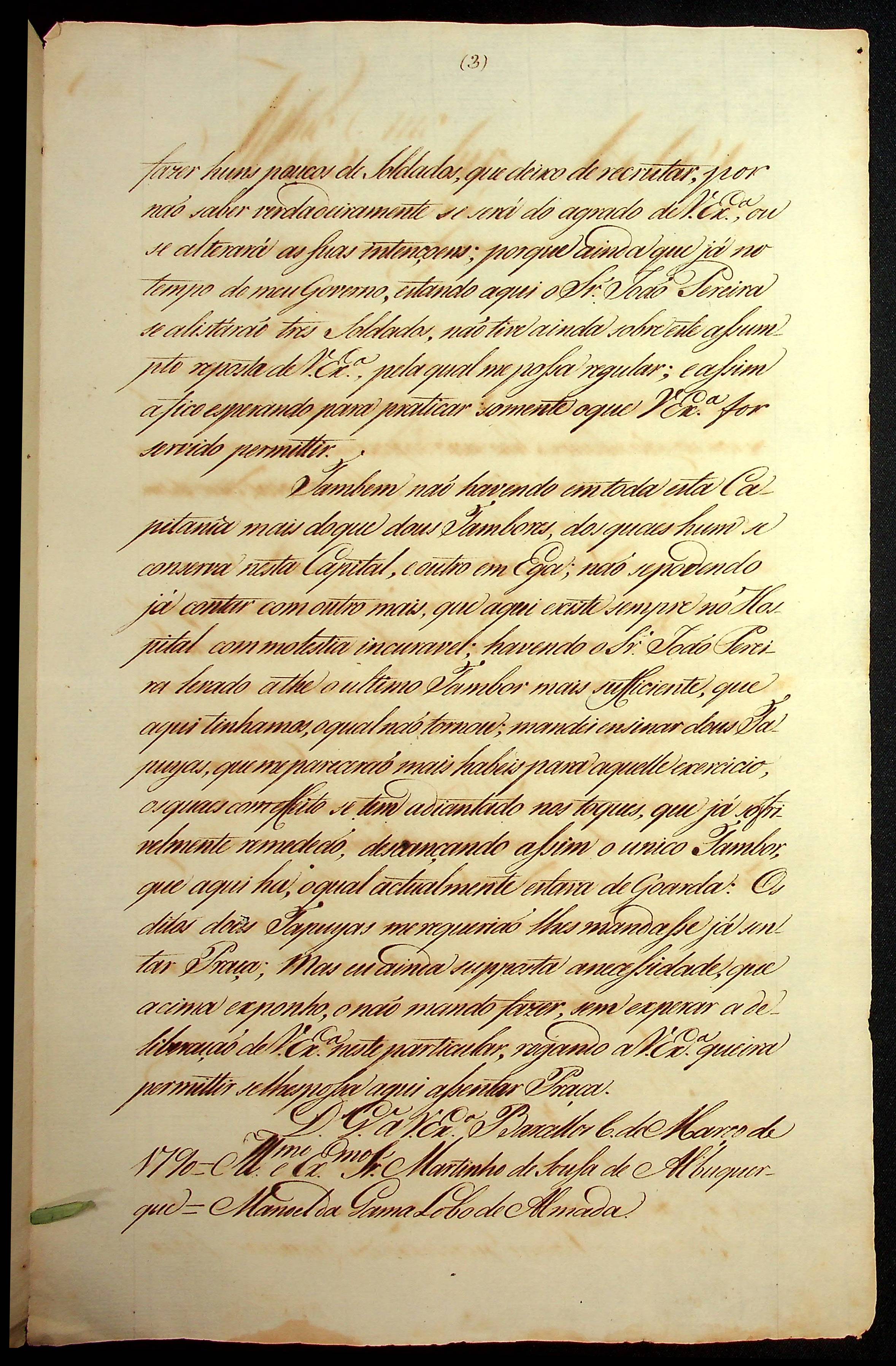 CARTA (cópia) de Manoel da Gama Lobo de Almada ao [Governador e Capitão-General da Capitania do Grão-Pará e Maranhão] Martinho de Souza de Albuquerque.
