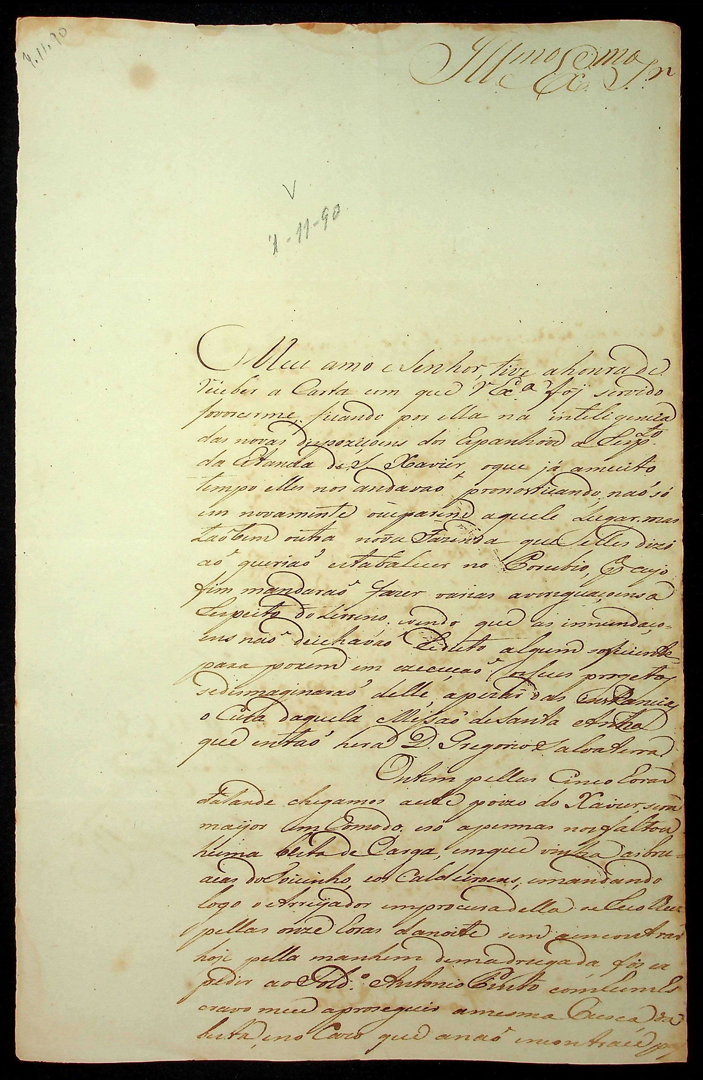 CARTA de Joaquim José Ferreira Coutinho ao [Governador e Capitão General da Capitania de Mato Grosso] João de Albuquerque de Melo Pereira e Cáceres.