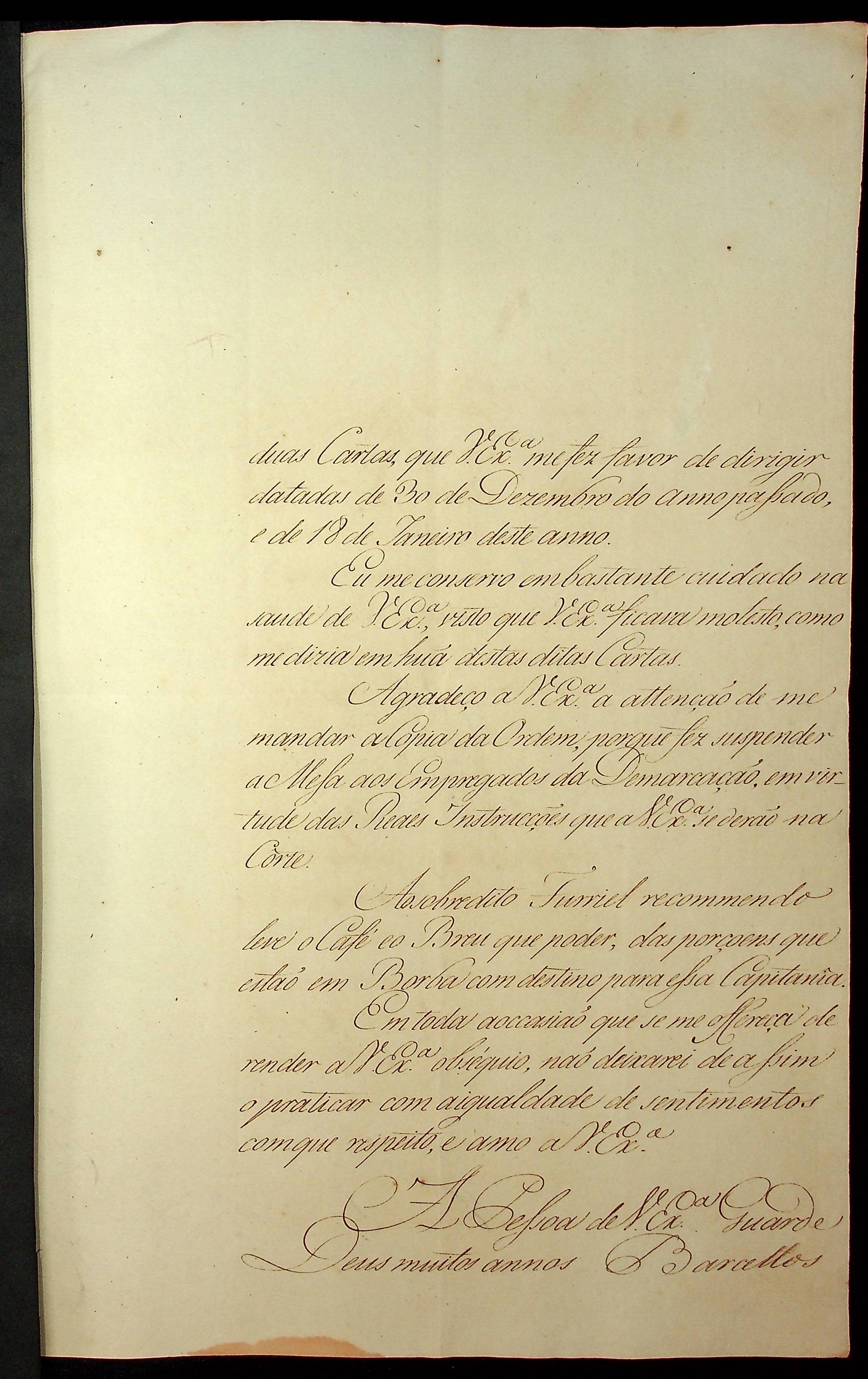 CARTA de Manoel da Gama Lobo de Almada ao [Governador e Capitão General da Capitania de Mato Grosso] João de Albuquerque de Melo Pereira e Cáceres.