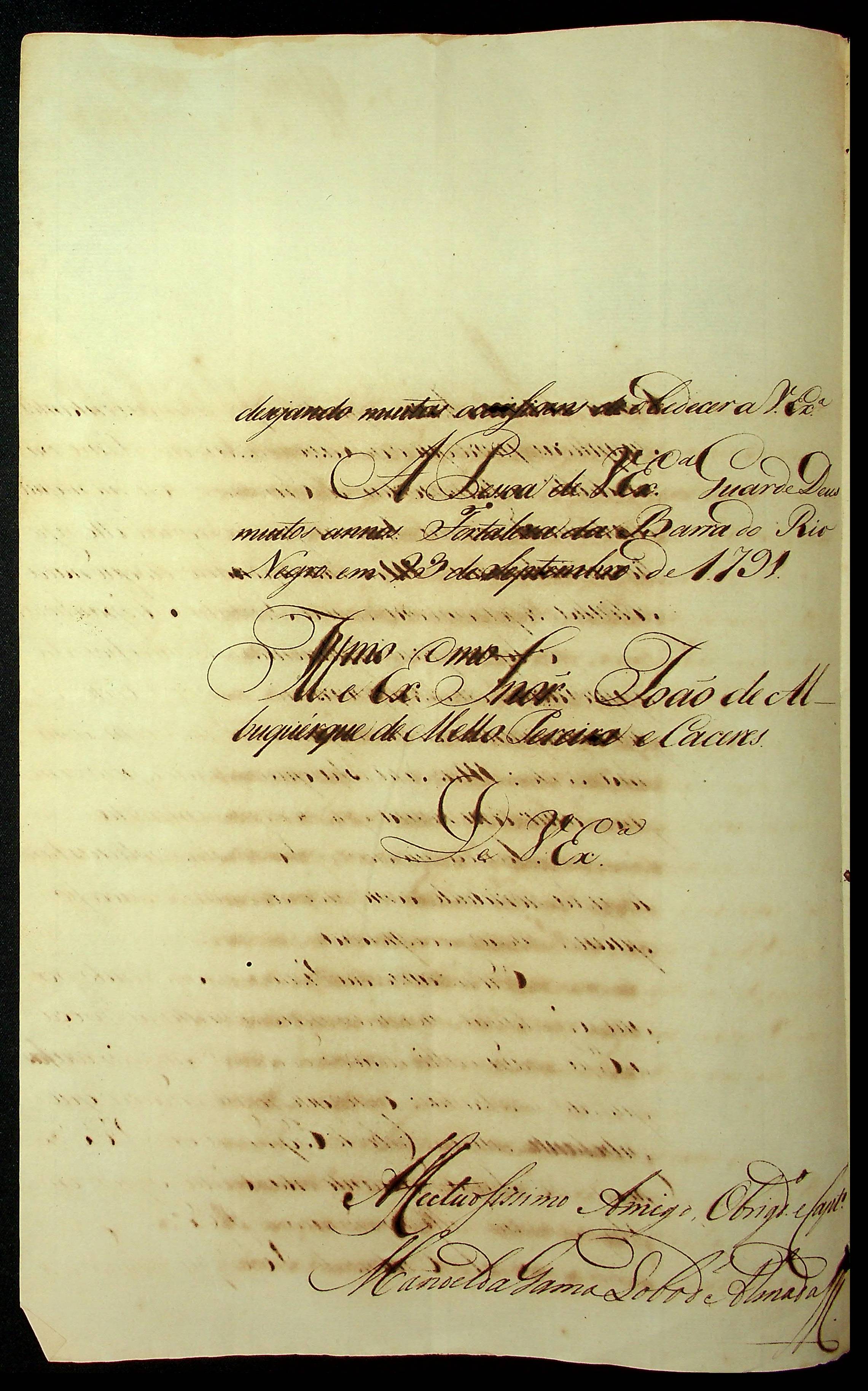 CARTA de Manoel da Gama Lobo e Almada ao [Governador e Capitão General da Capitania de Mato Grosso] João de Albuquerque de Melo Pereira e Cáceres.