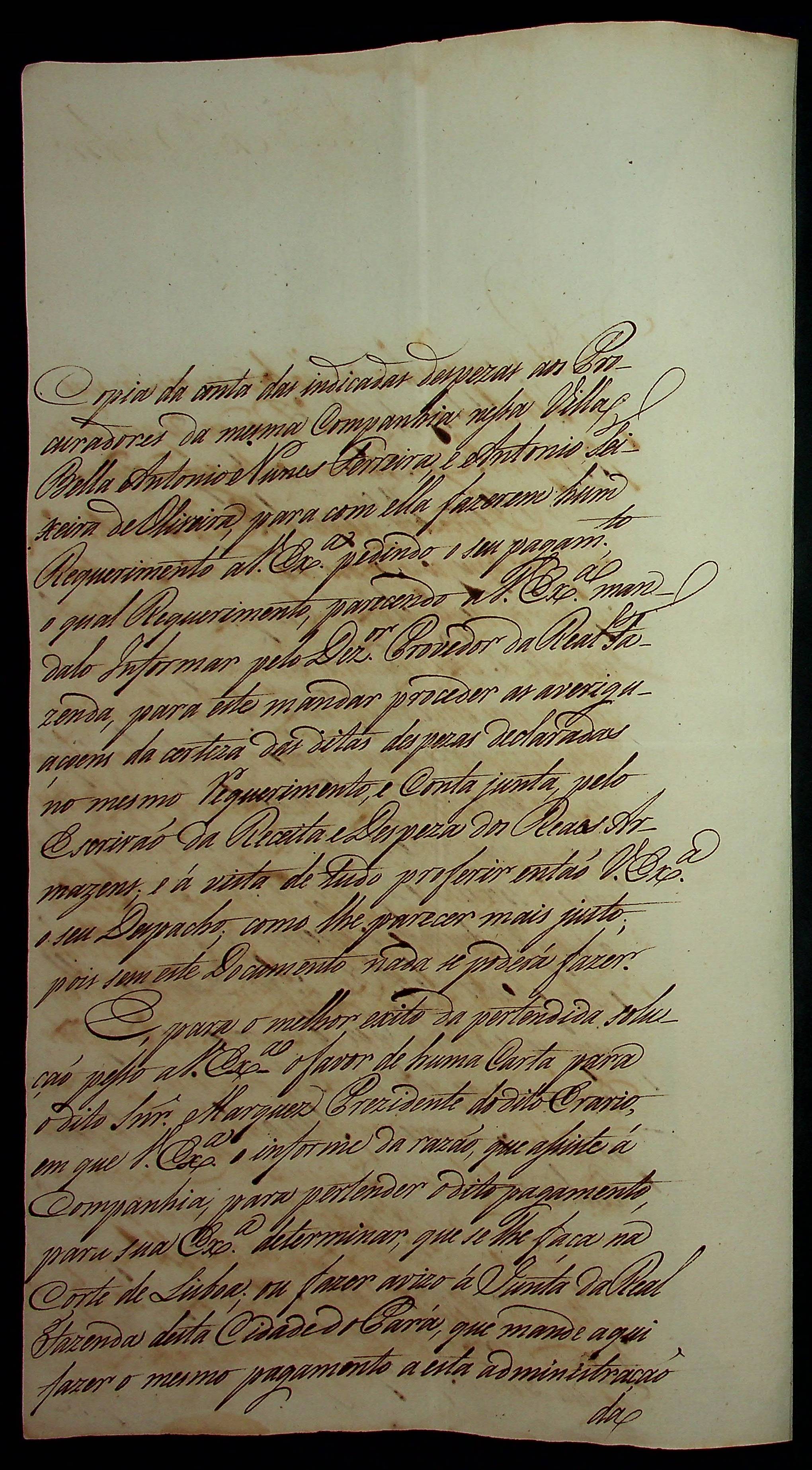 CARTA de Manoel José da Cunha ao [Governador e Capitão-General da Capitania de Mato Grosso] João de Albuquerque de Mello Pereira e Cáceres.