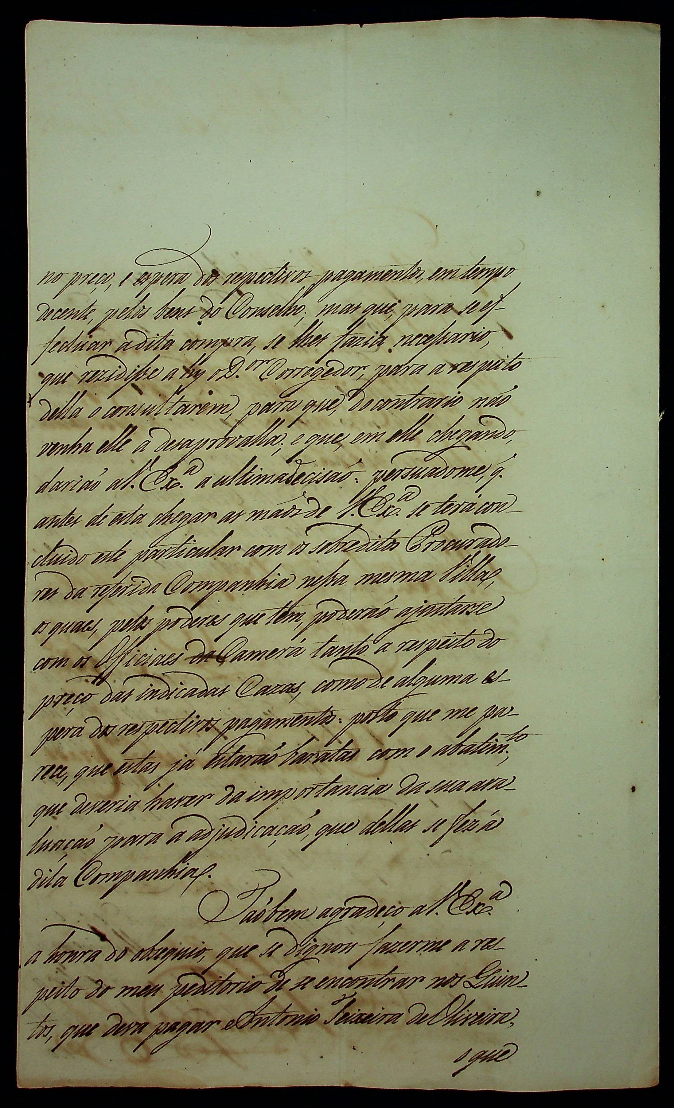 CARTA de Manoel José da Cunha ao [Governador e Capitão-General da Capitania de Mato Grosso] João de Albuquerque de Mello Pereira e Cáceres.