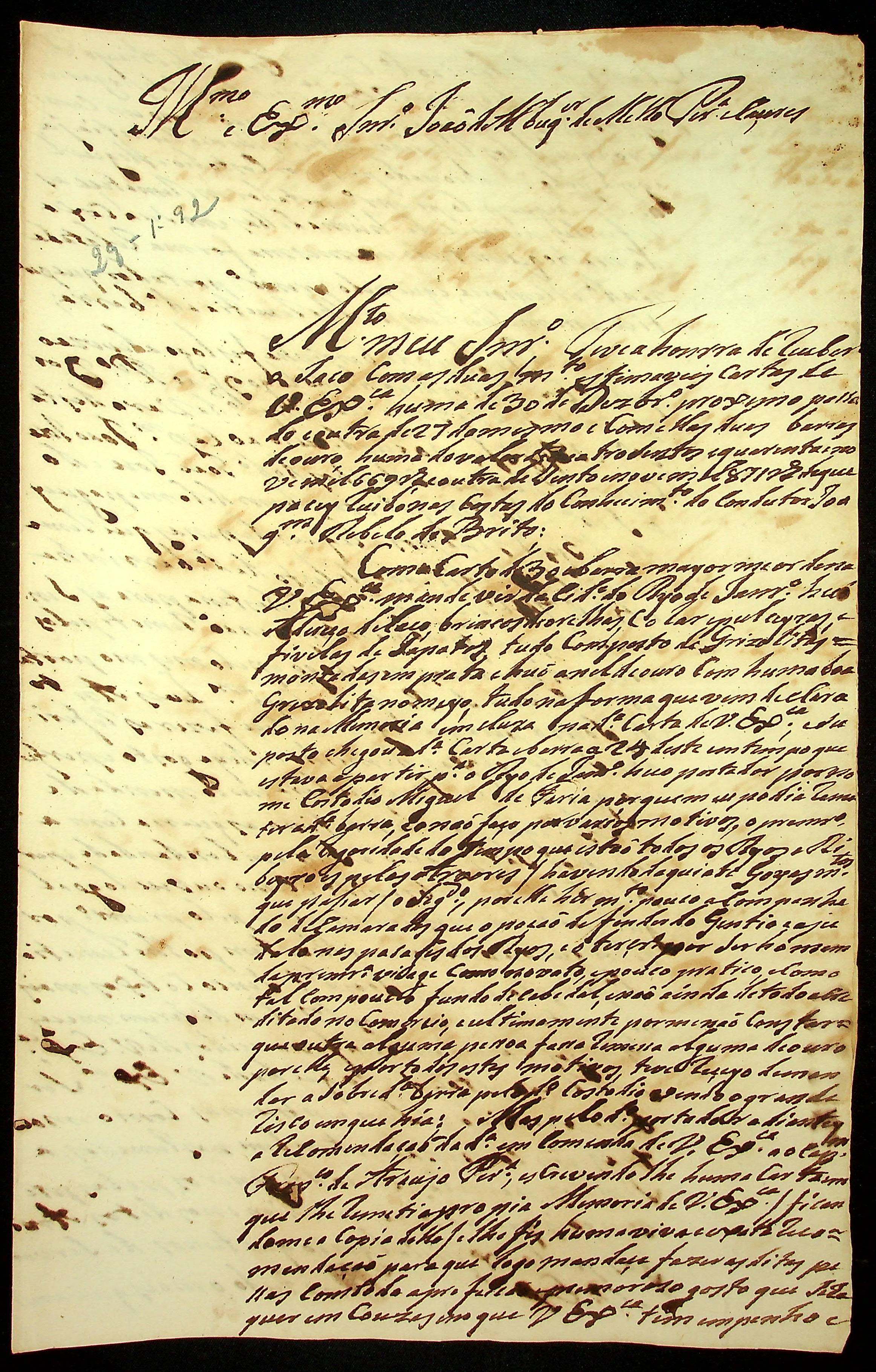 CARTA de José Pereira Nunes ao [Governador e Capitão-General da Capitania de Mato Grosso] João de Albuquerque de Mello Pereira e Cáceres.
