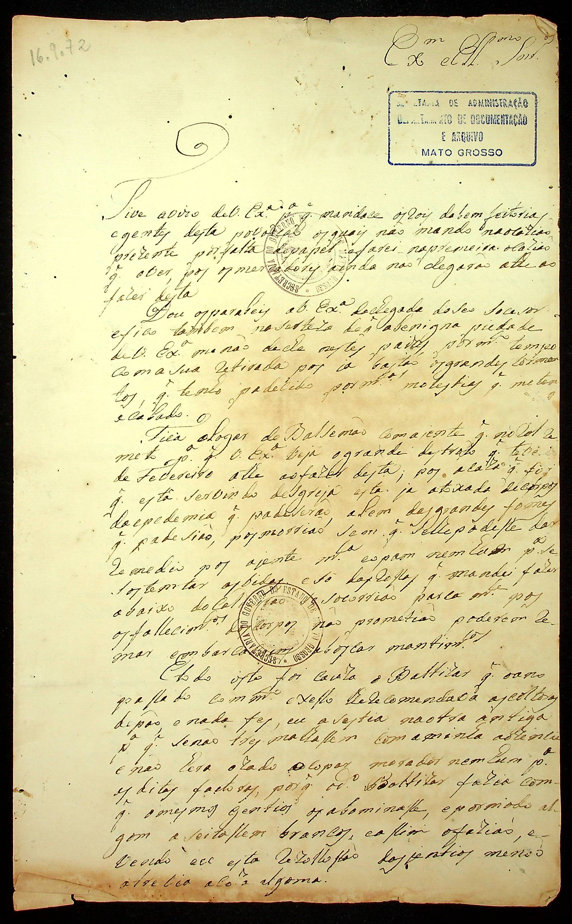CARTA de Agapito Marcos de Oliveira ao [Governador e Capitão-General da Capitania de Mato Grosso João de Albuquerque de Mello Pereira e Cáceres].