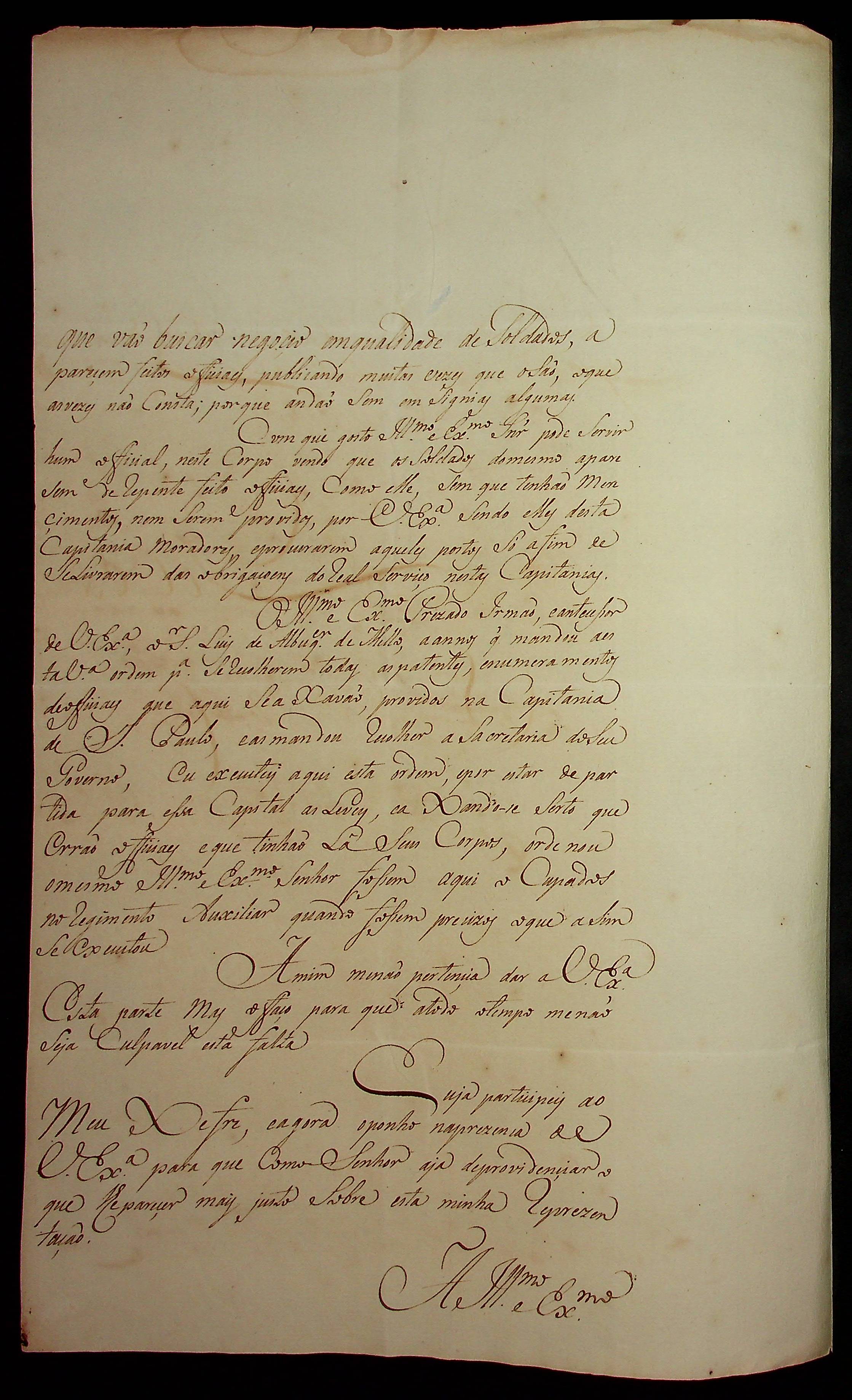 CARTA de Antônio Paes Souza de Albuquerque ao [Governador e Capitão-General da Capitania de Mato Grosso João de Albuquerque de Mello Pereira e Cáceres].