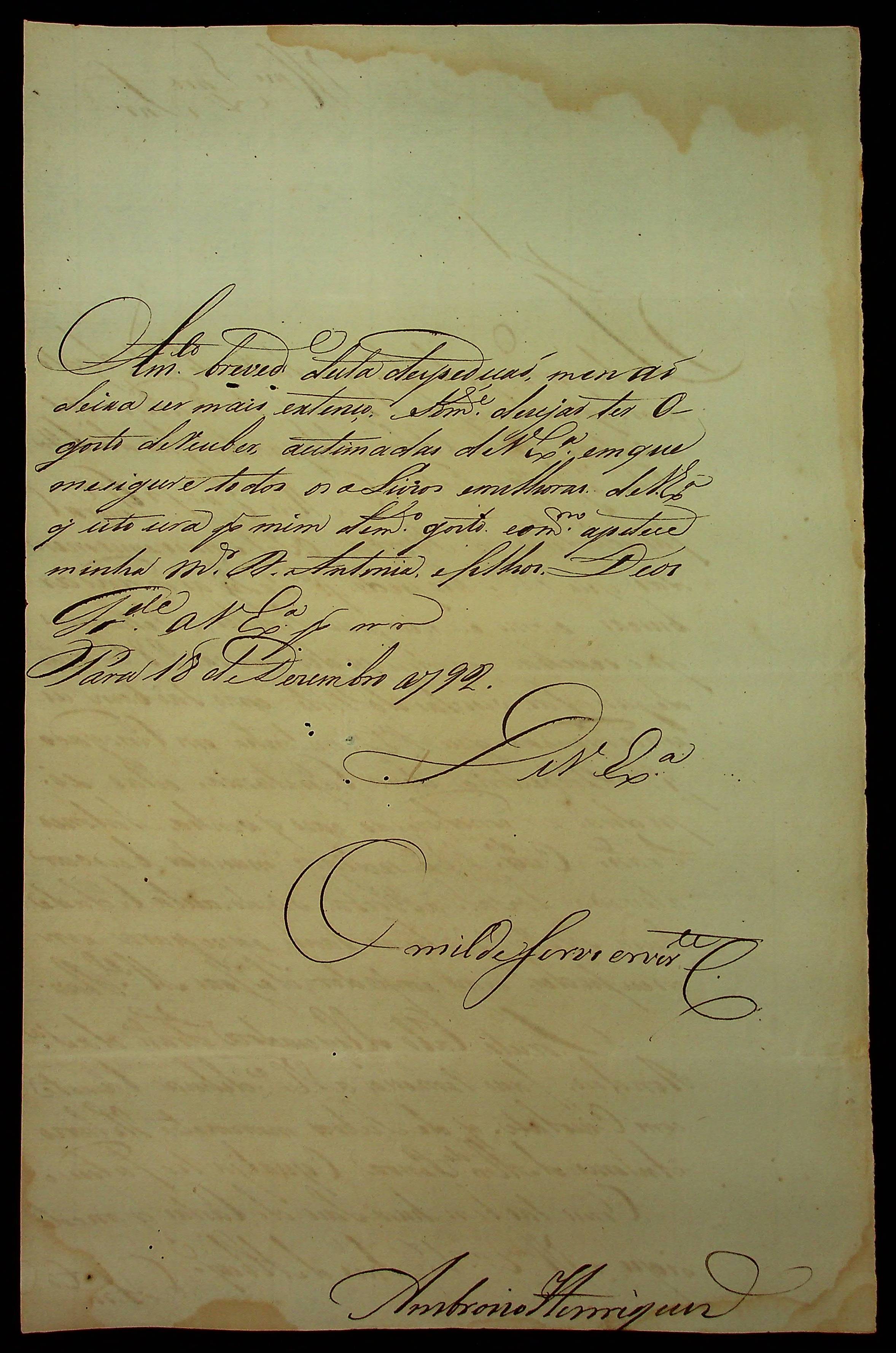 CARTA de Ambrósio Henriques ao [Governador e Capitão-General da Capitania de Mato Grosso João de Albuquerque de Mello Pereira e Cáceres].