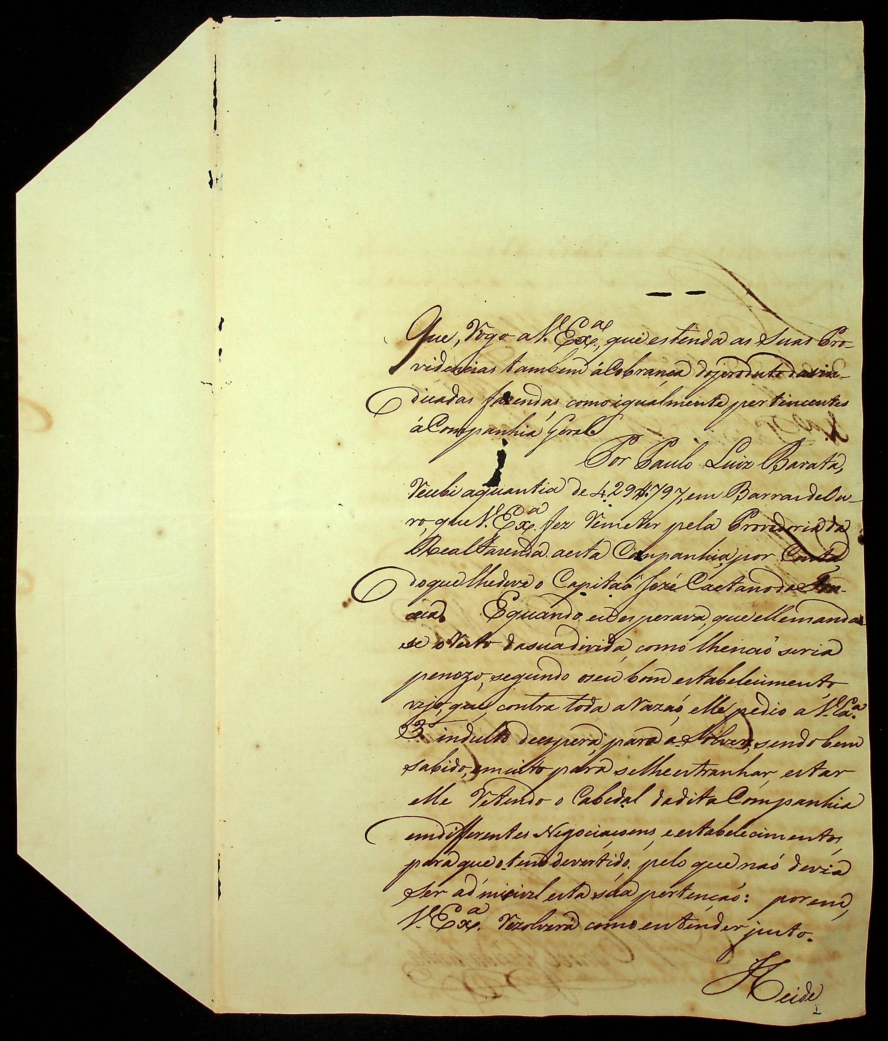 CARTA de Manoel José da Cunha ao [Governador e Capitão-General da Capitania de Mato Grosso] João de Albuquerque de Mello Pereira e Cáceres.