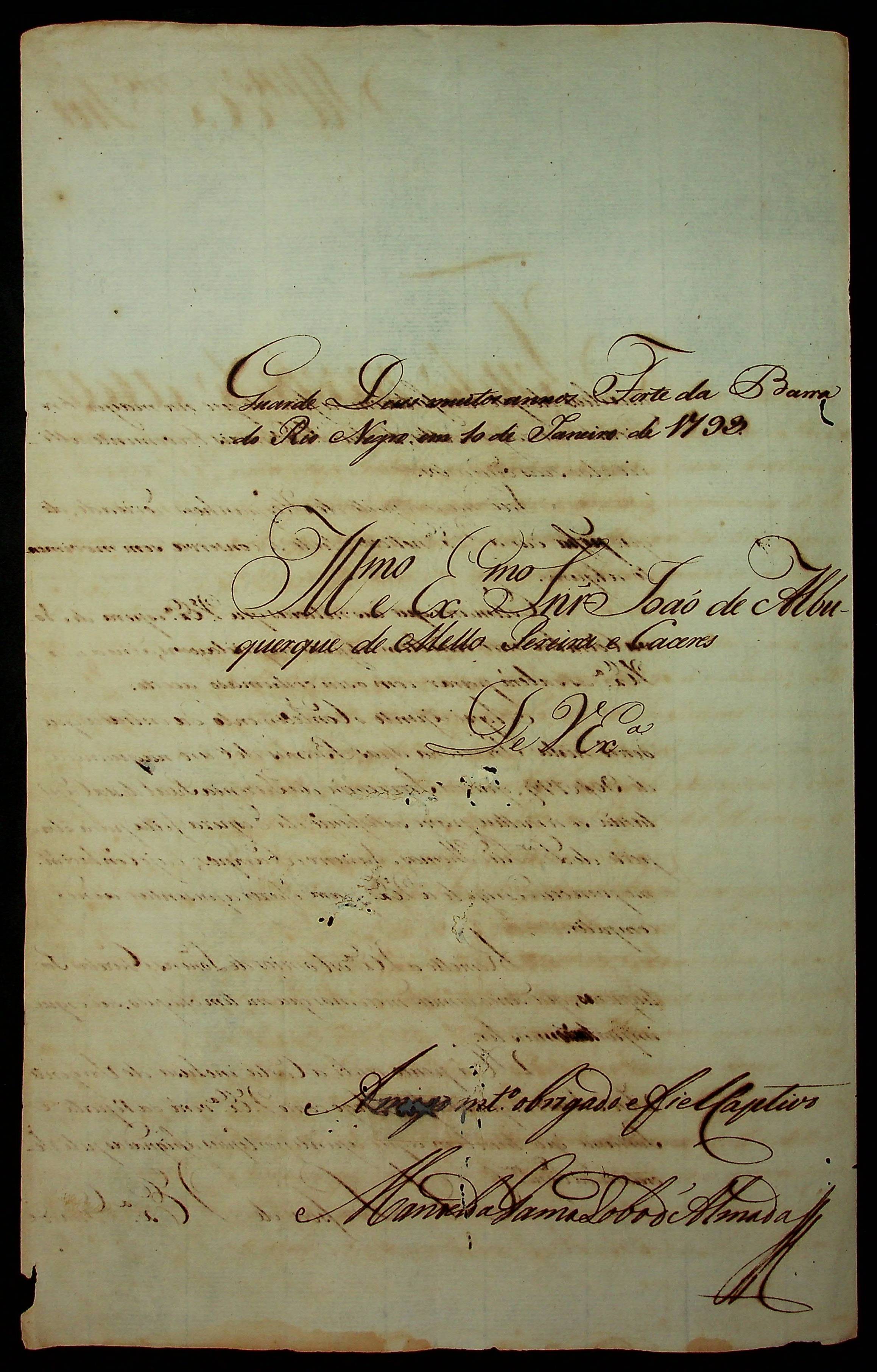 CARTA de Manoel da Gama Lobo de Almada ao [Governador e Capitão-General da Capitania de Mato Grosso] João de Albuquerque de Mello Pereira e Cáceres.