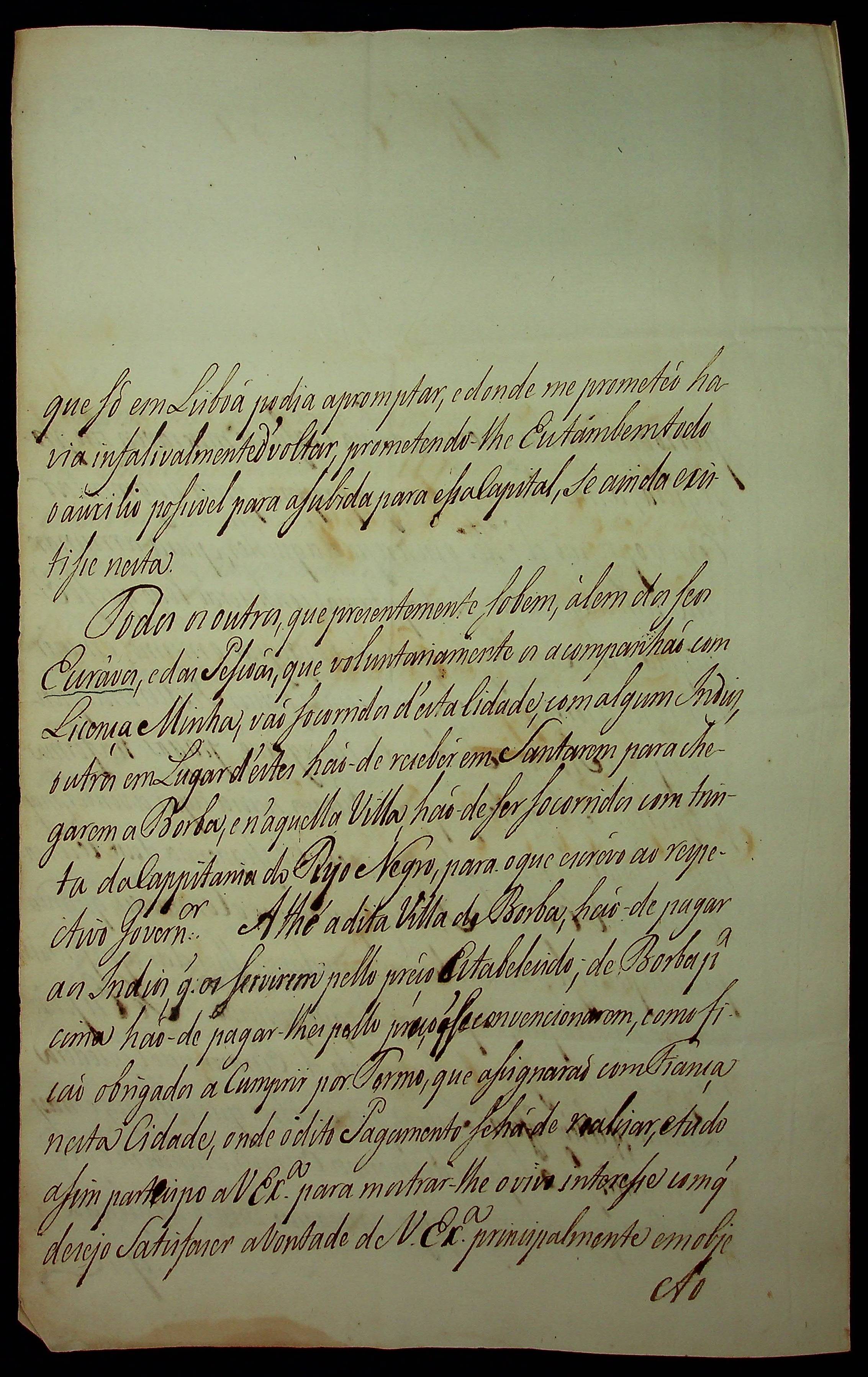 CARTA do [Governador e Capitão-General da Capitania do Pará] Francisco de Souza Coutinho ao [Governador e Capitão-General da Capitania de Mato Grosso] João de Albuquerque de Melo Pereira e Cáceres.