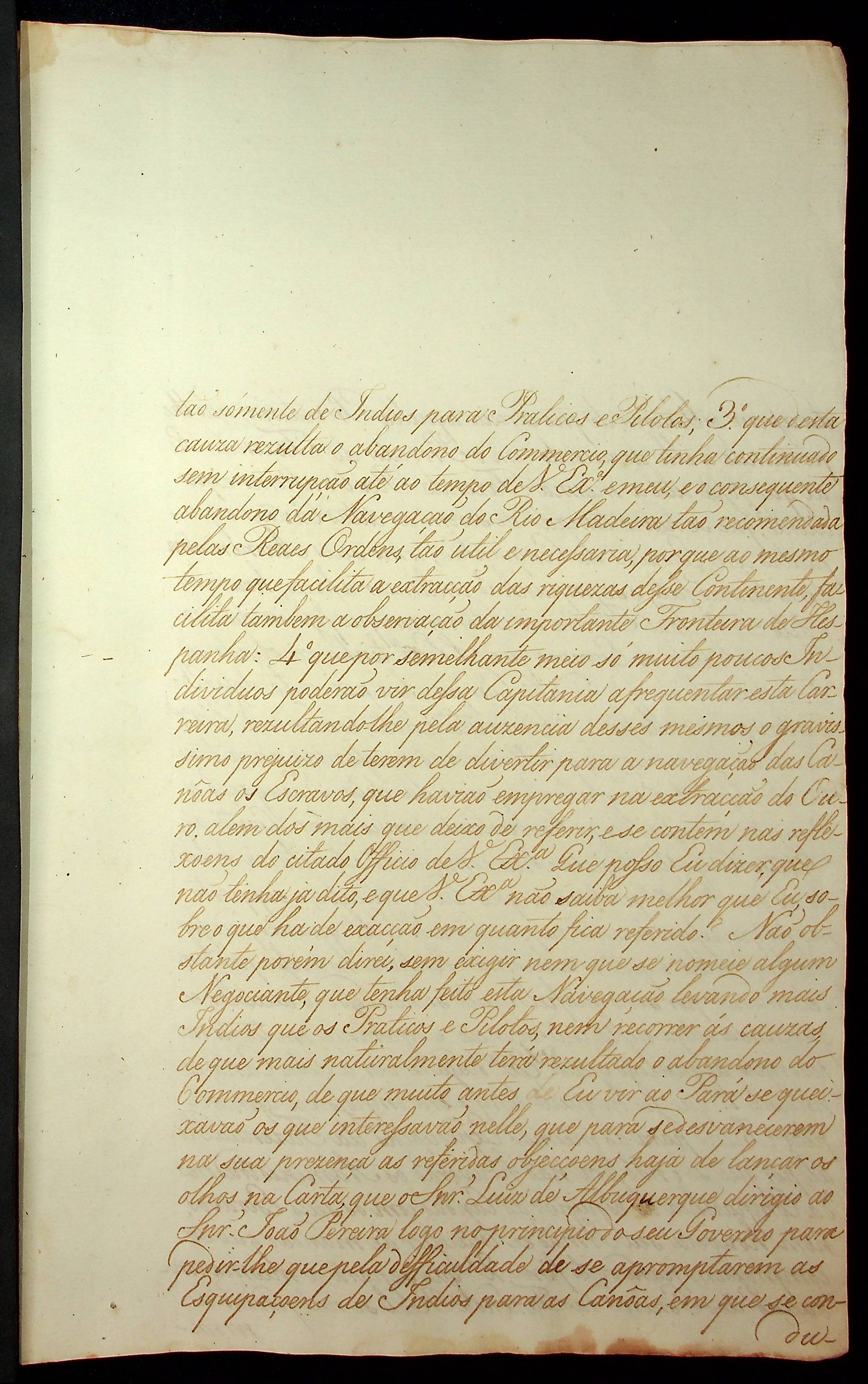 CARTA de Francisco de Sousa Coutinho ao [Governador e Capitão-General da Capitania de Mato Grosso] João de Albuquerque de Melo Pereira e Cáceres.