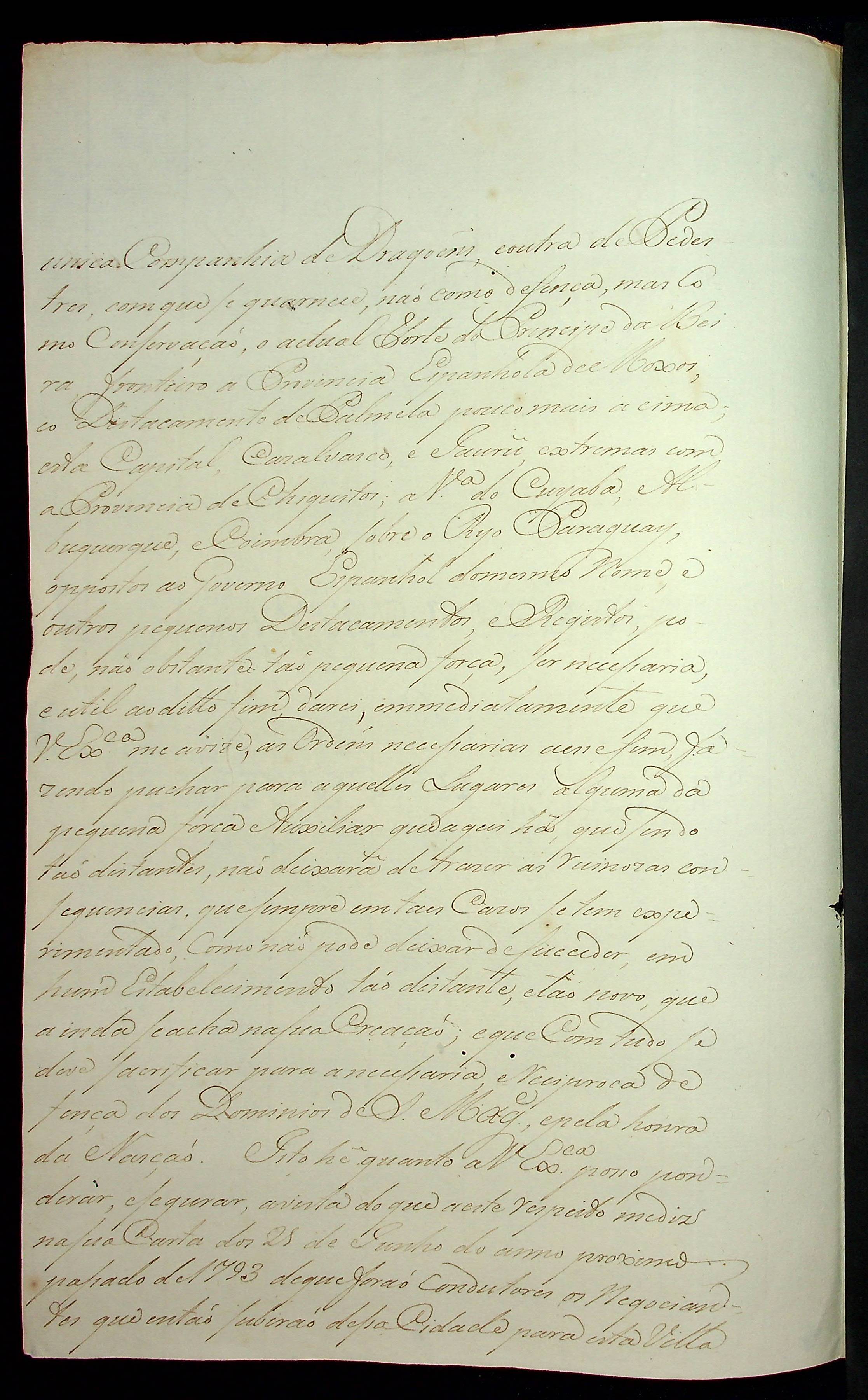 CARTA (Cópia) de Francisco de Sousa Coutinho ao [Governador e Capitão-General da Capitania de Mato Grosso] João de Albuquerque de Melo Pereira e Cáceres.