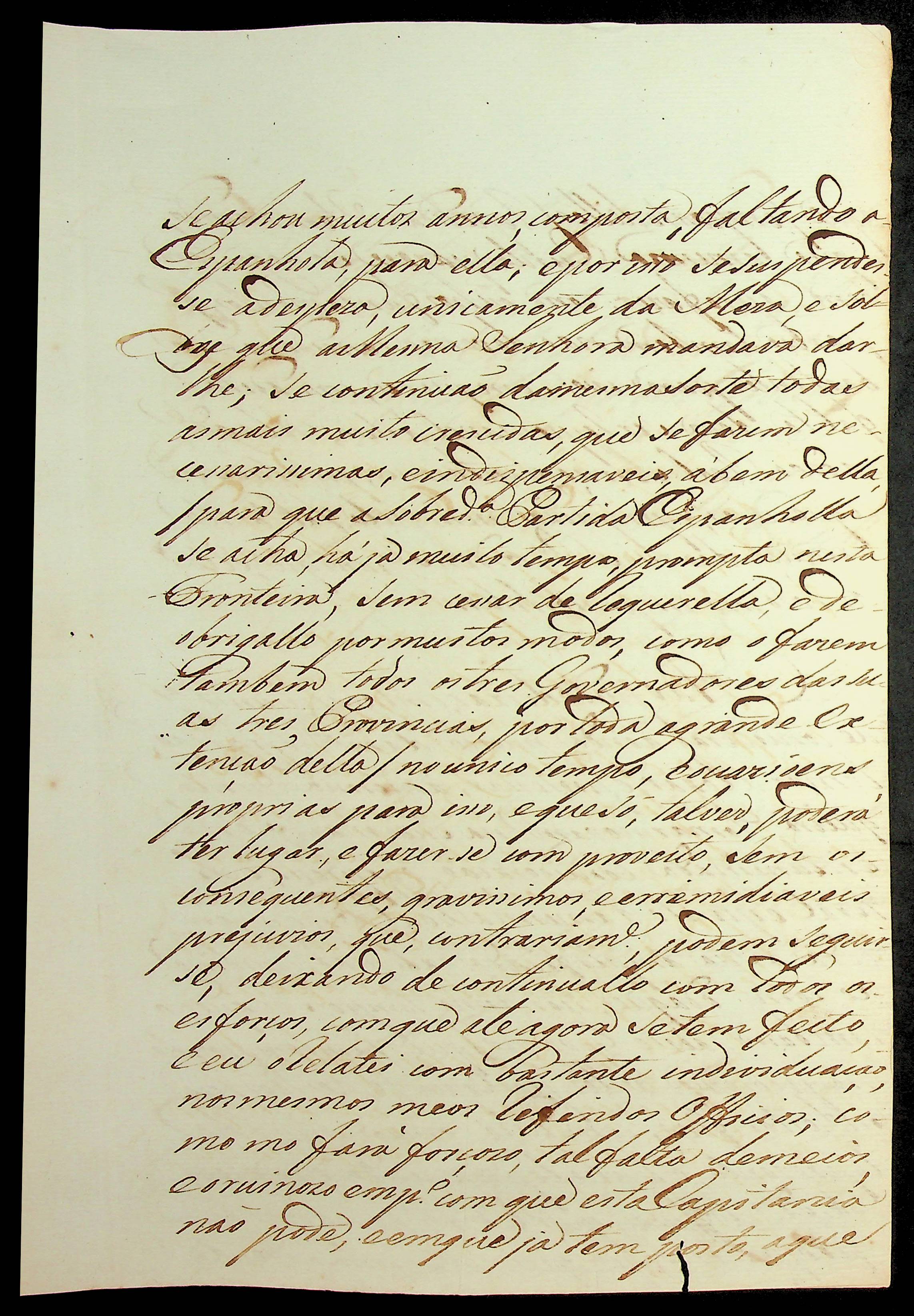 CARTA (cópia) do [Governador e Capitão General da Capitania de Mato Grosso] Grosso João de Albuquerque de Mello Pereira e Cáceres ao do [Governador e Capitão-General da Capitania de Goiás] Tristão da Cunha Menezes.