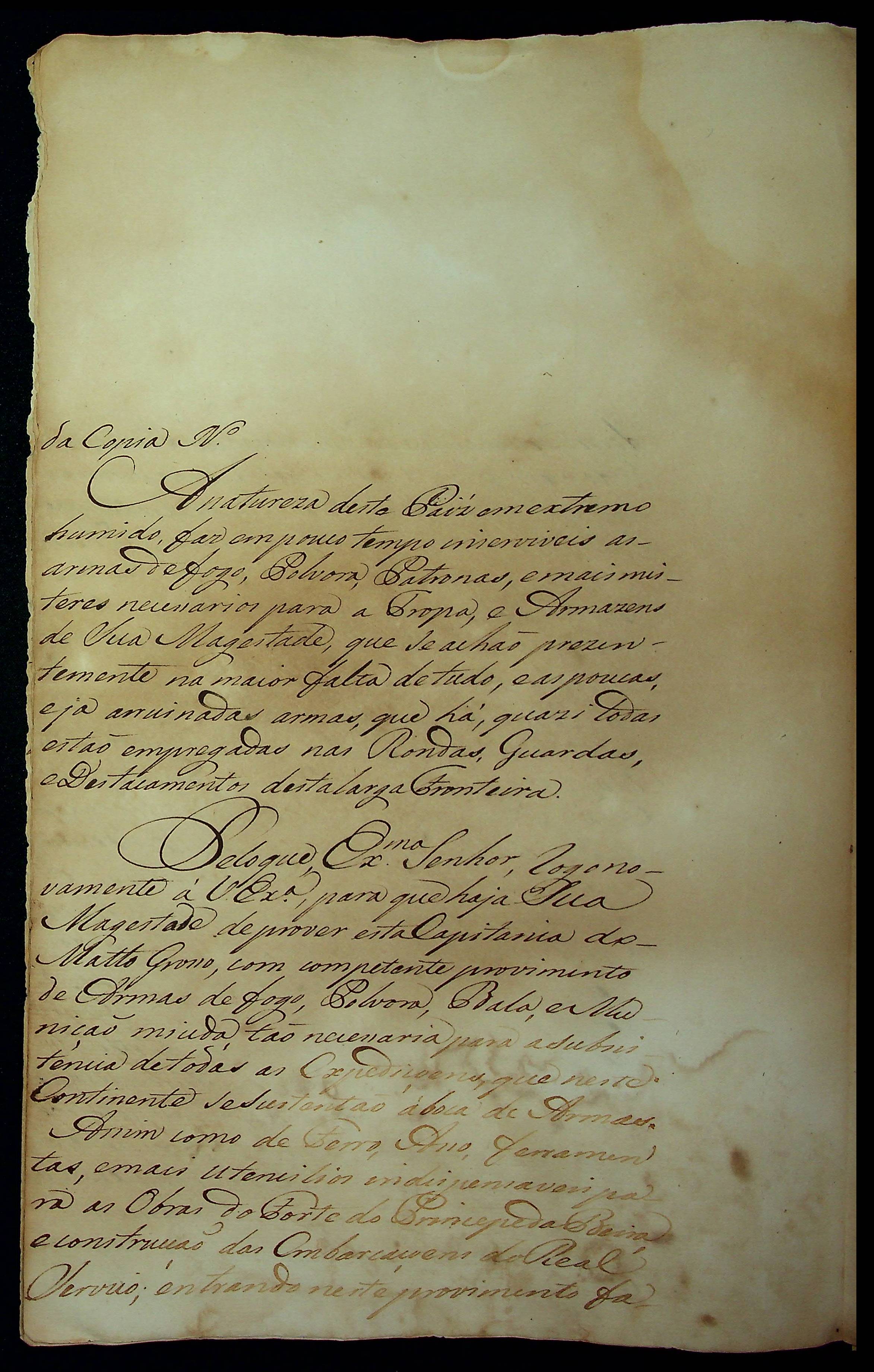 CARTA do [Governador e Capitão General da Capitania de Mato Grosso] João de Albuquerque de Mello Pereira e Cáceres ao [Secretário de Estado dos Negócios da Marinha e Ultramar] Martinho de Melo e Castro.