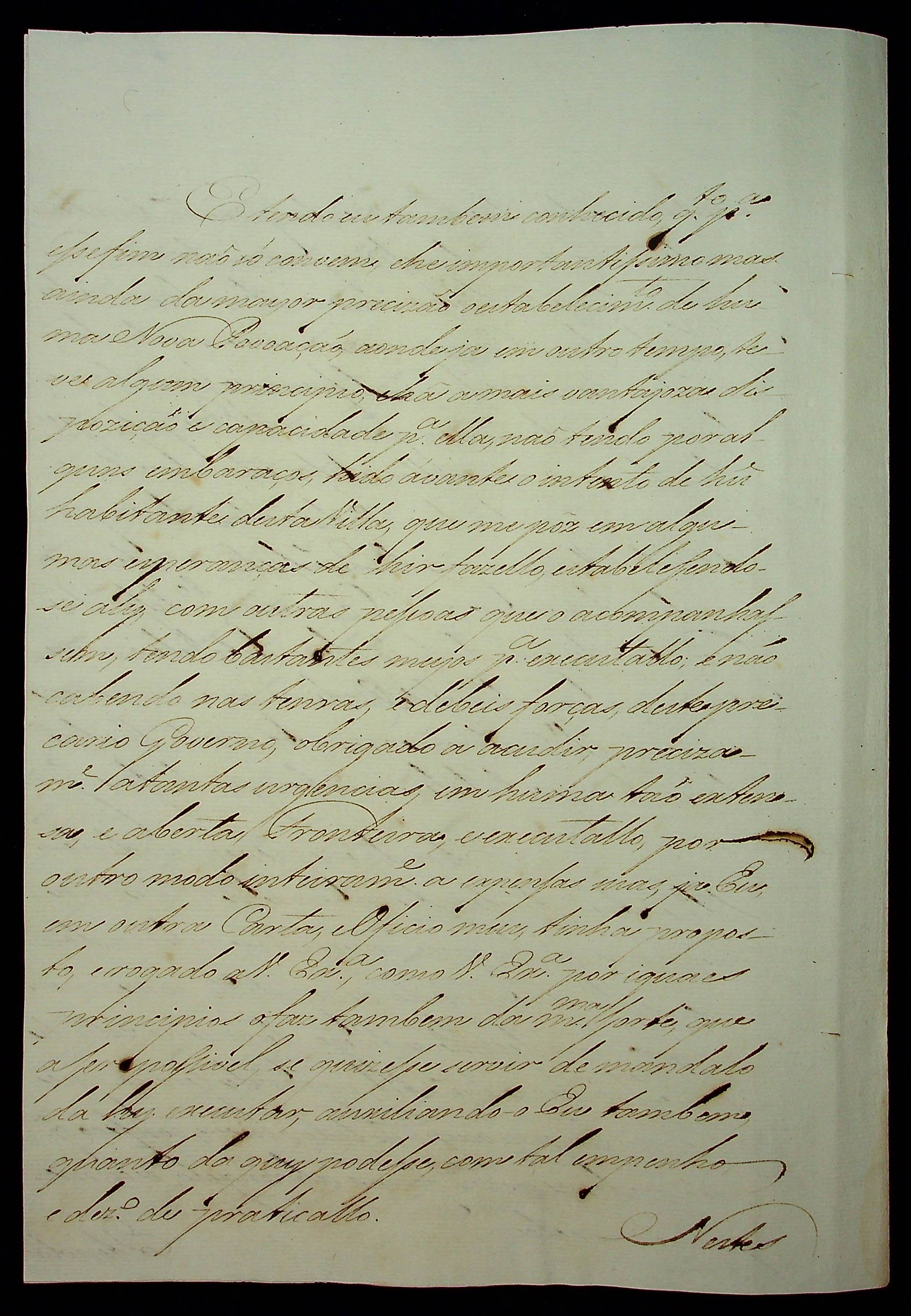 CARTA (Cópia) do [Governador e Capitão-General da Capitania de Mato Grosso] João de Albuquerque de Melo Pereira e Cáceres ao [Governador e Capitão-General da Capitania do Pará] Francisco de Souza Coutinho.