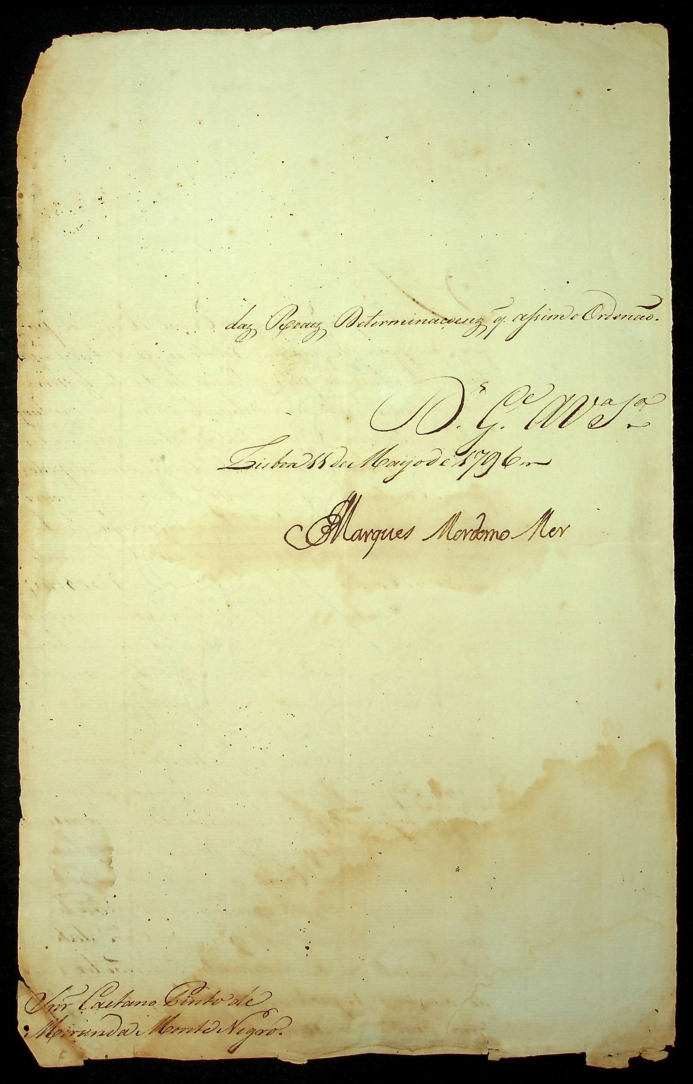 CARTA do Marquês Mordomo Mor ao [Governador e Capitão General da Capitania de Mato Grosso] Caetano Pinto de Miranda Montenegro.