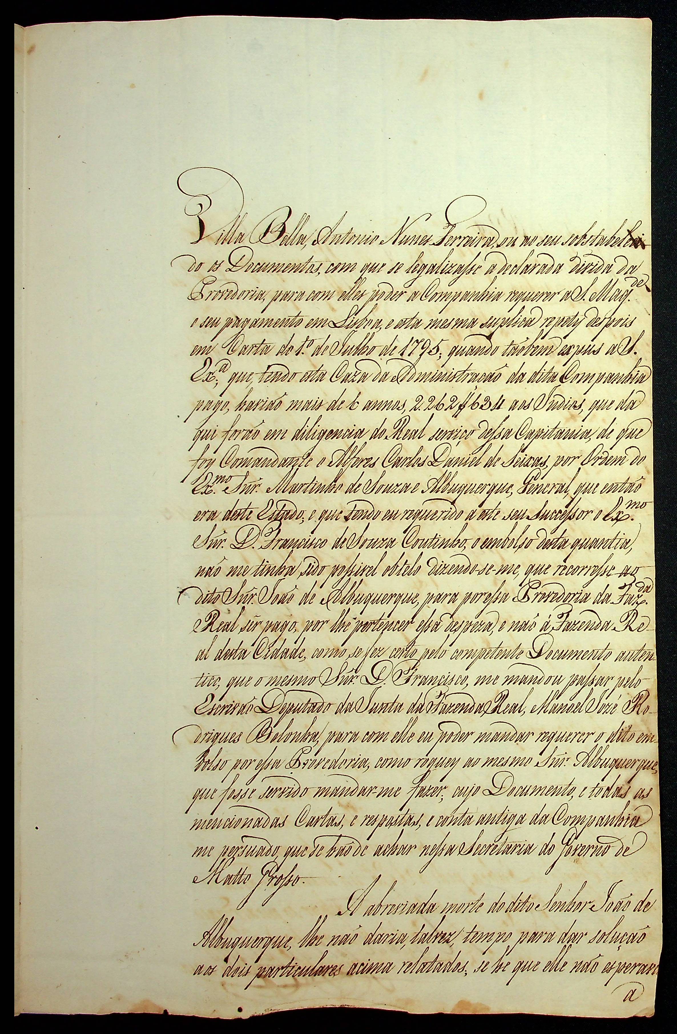 CARTA de Manoel José da Cunha ao [Governador e Capitão-General da Capitania de Mato Grosso] Caetano Pinto de Miranda Vasconcelos e Montenegro.