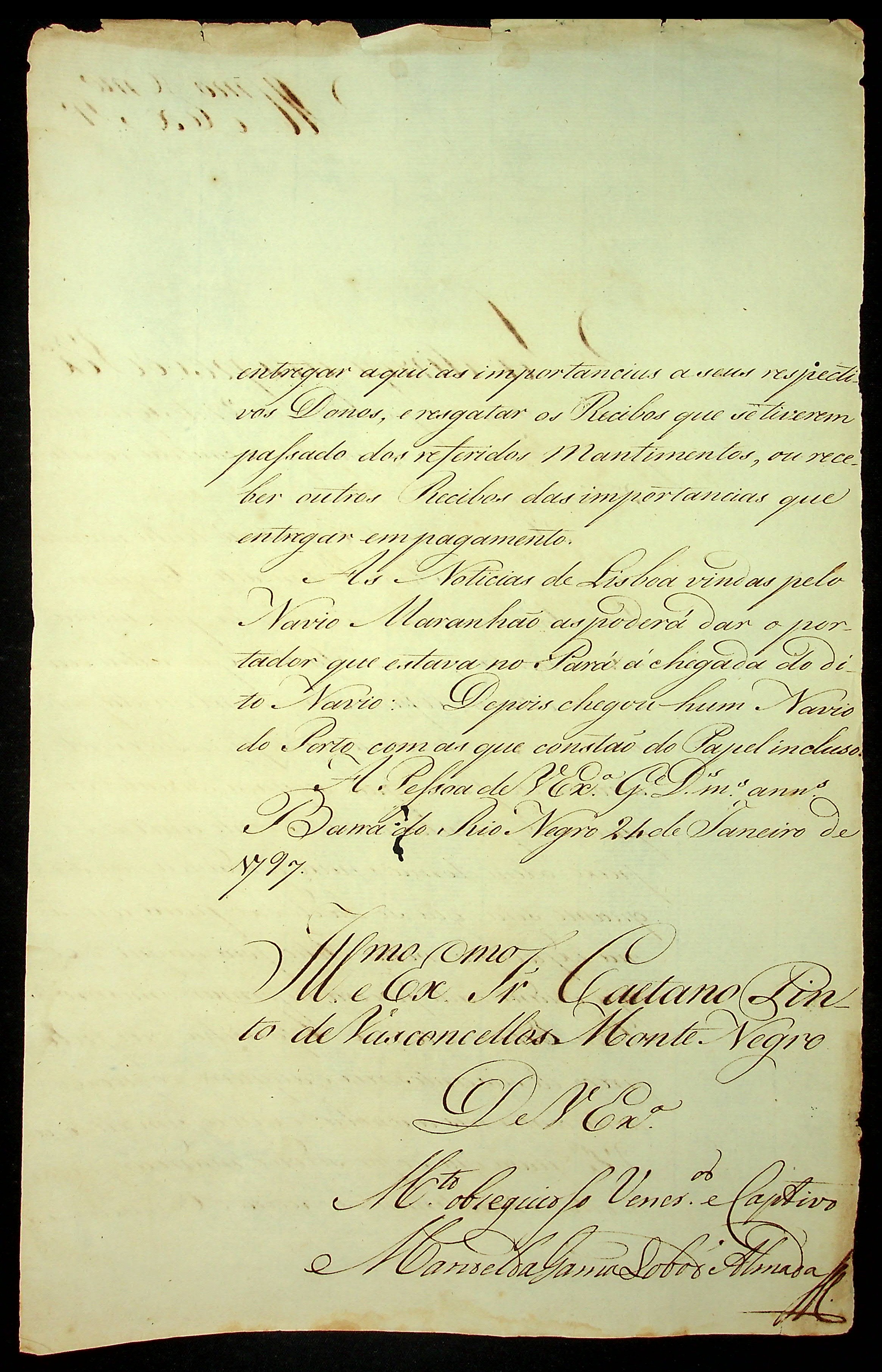 CARTA de Manoel da Gama Lobo Almada ao [Governador e Capitão-General da Capitania de Mato Grosso] Caetano Pinto de Miranda e Montenegro.