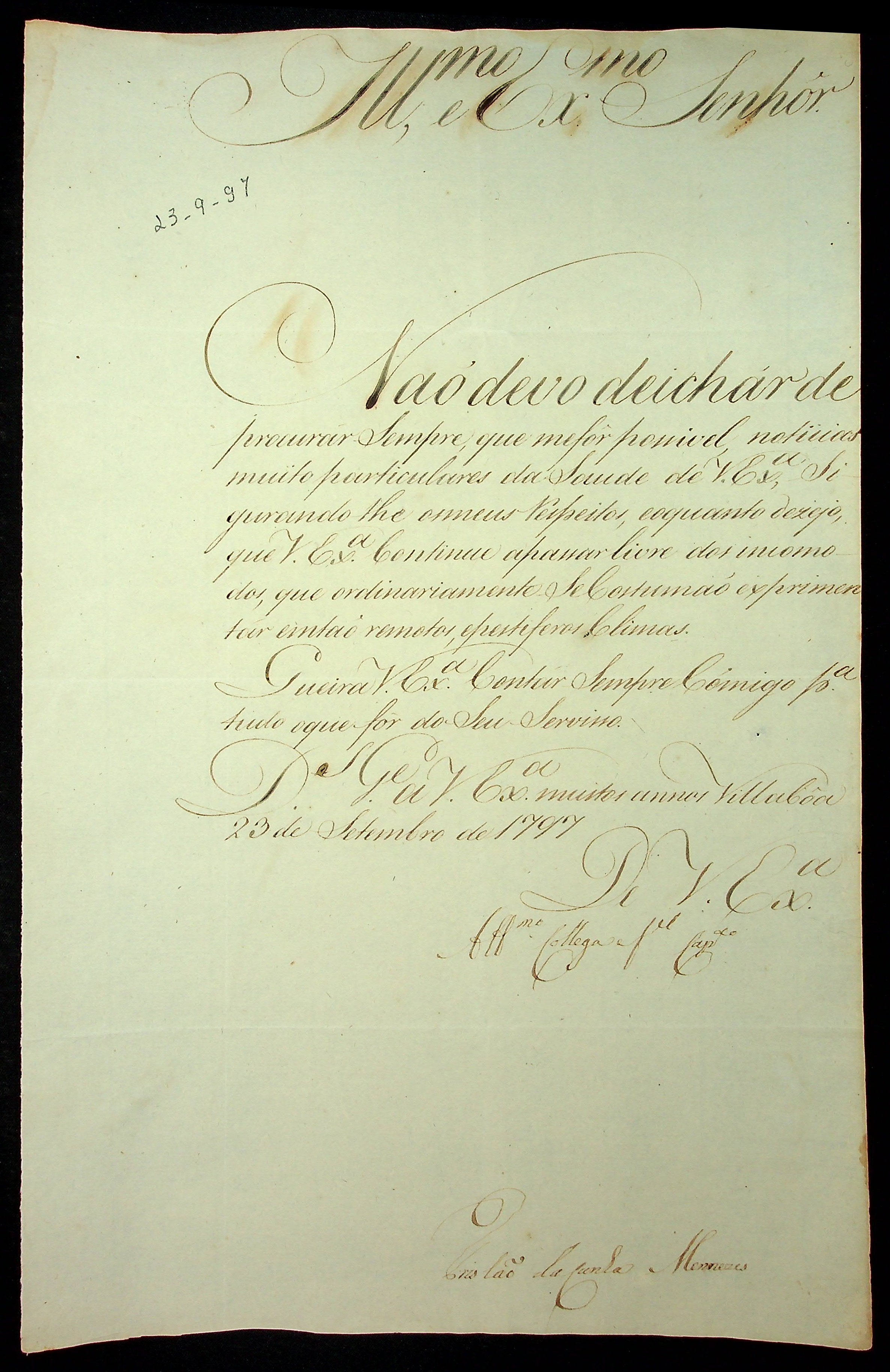 CARTA do [Governador e Capitão-General da Capitania de Goiás] Tristão da Cunha Menezes para o [Governador e Capitão-General da Capitania de Mato Grosso Caetano Pinto de Miranda e Montenegro].