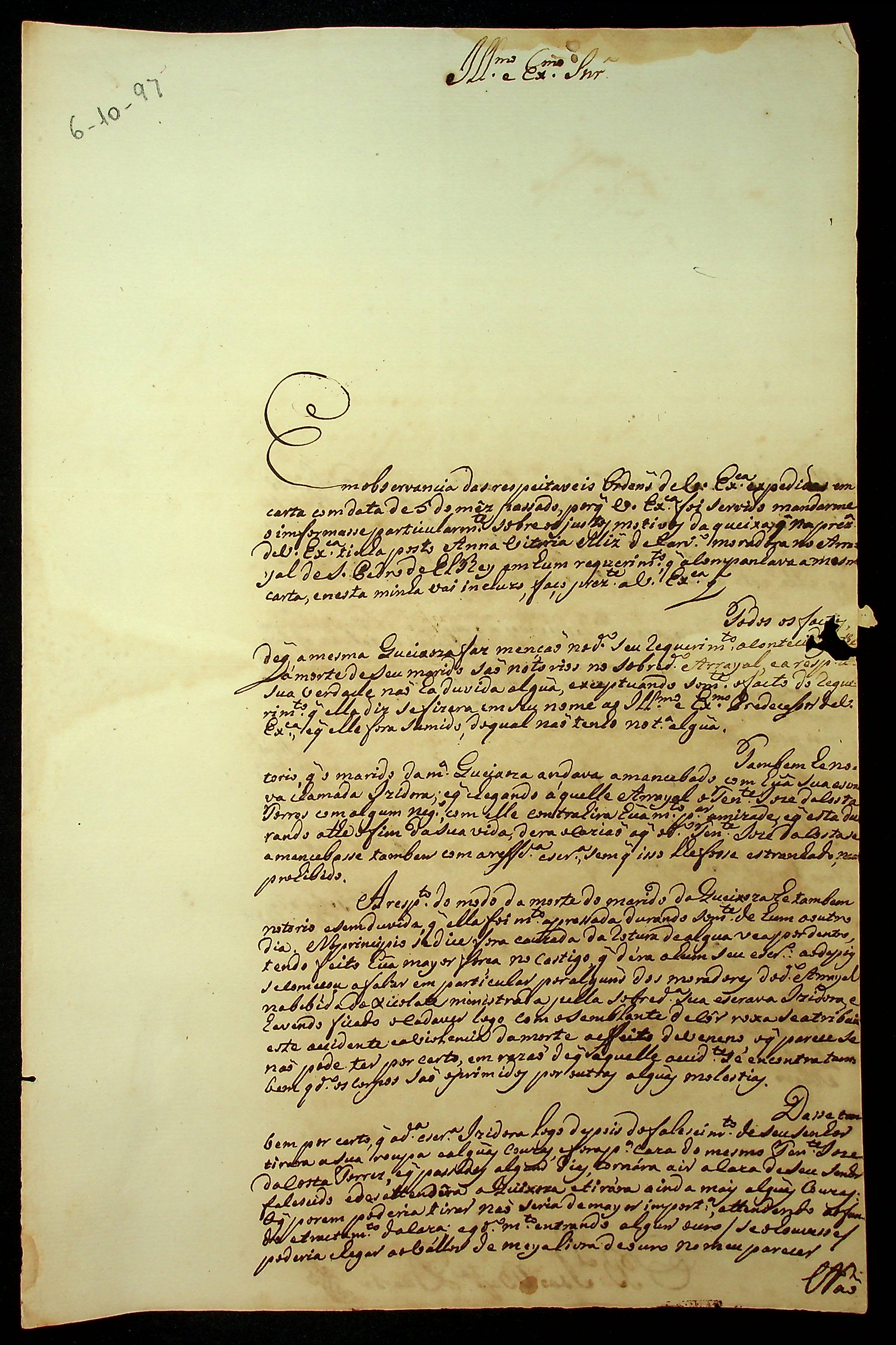 CARTA do Bacharel João Batista Duarte para o [Governador e Capitão-General da Capitania de Mato Grosso] Caetano Pinto de Miranda e Montenegro.