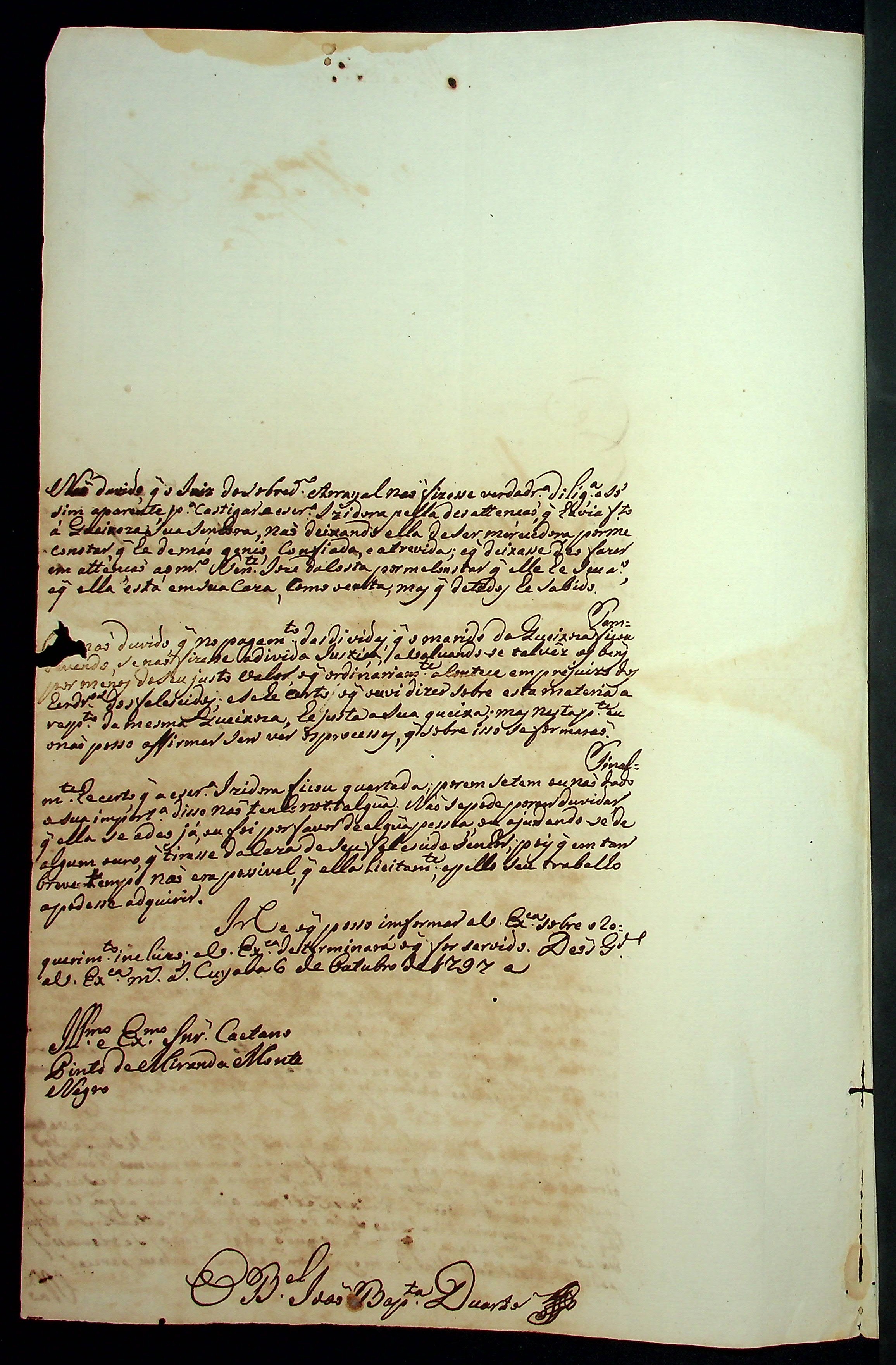 CARTA do Bacharel João Batista Duarte para o [Governador e Capitão-General da Capitania de Mato Grosso] Caetano Pinto de Miranda e Montenegro.
