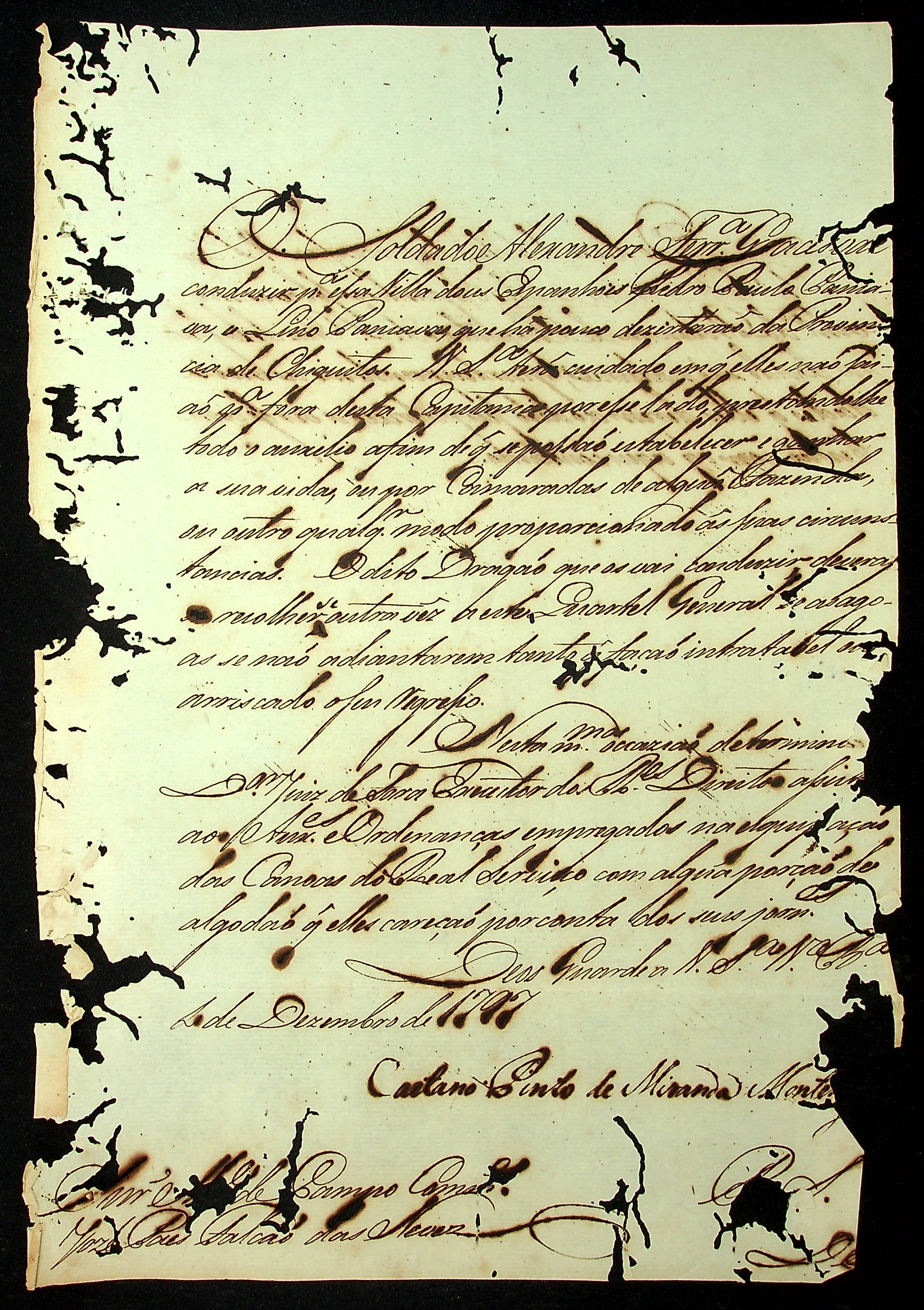 CARTA do [Governador e Capitão-General da Capitania de Mato Grosso] Caetano Pinto de Miranda e Montenegro ao Mestre de Campo Comandante José Paes Falcão das Neves.