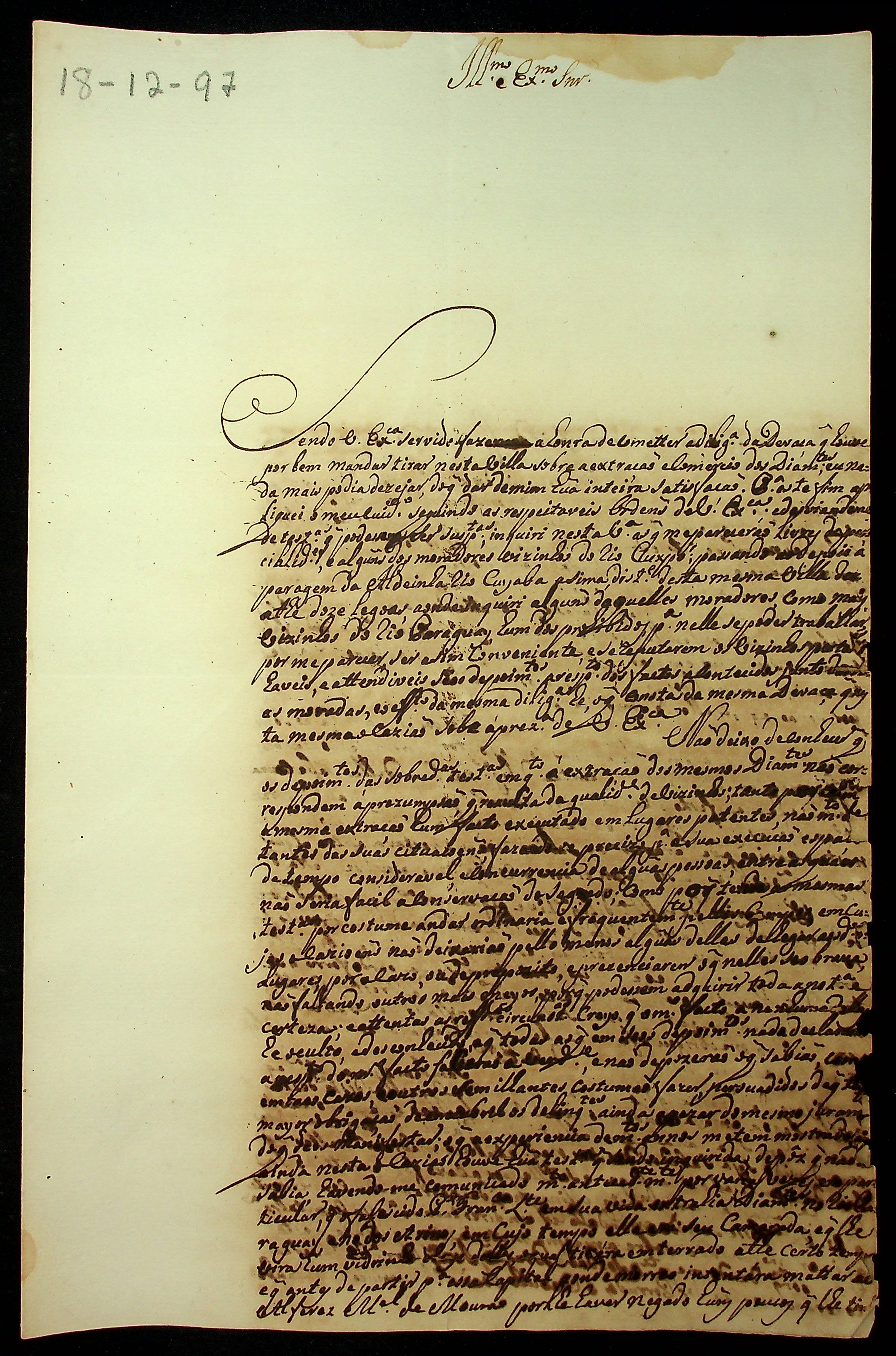 CARTA de João Batista Duarte ao [Governador e Capitão General da Capitania de Mato Grosso] Caetano Pinto de Miranda Montenegro.