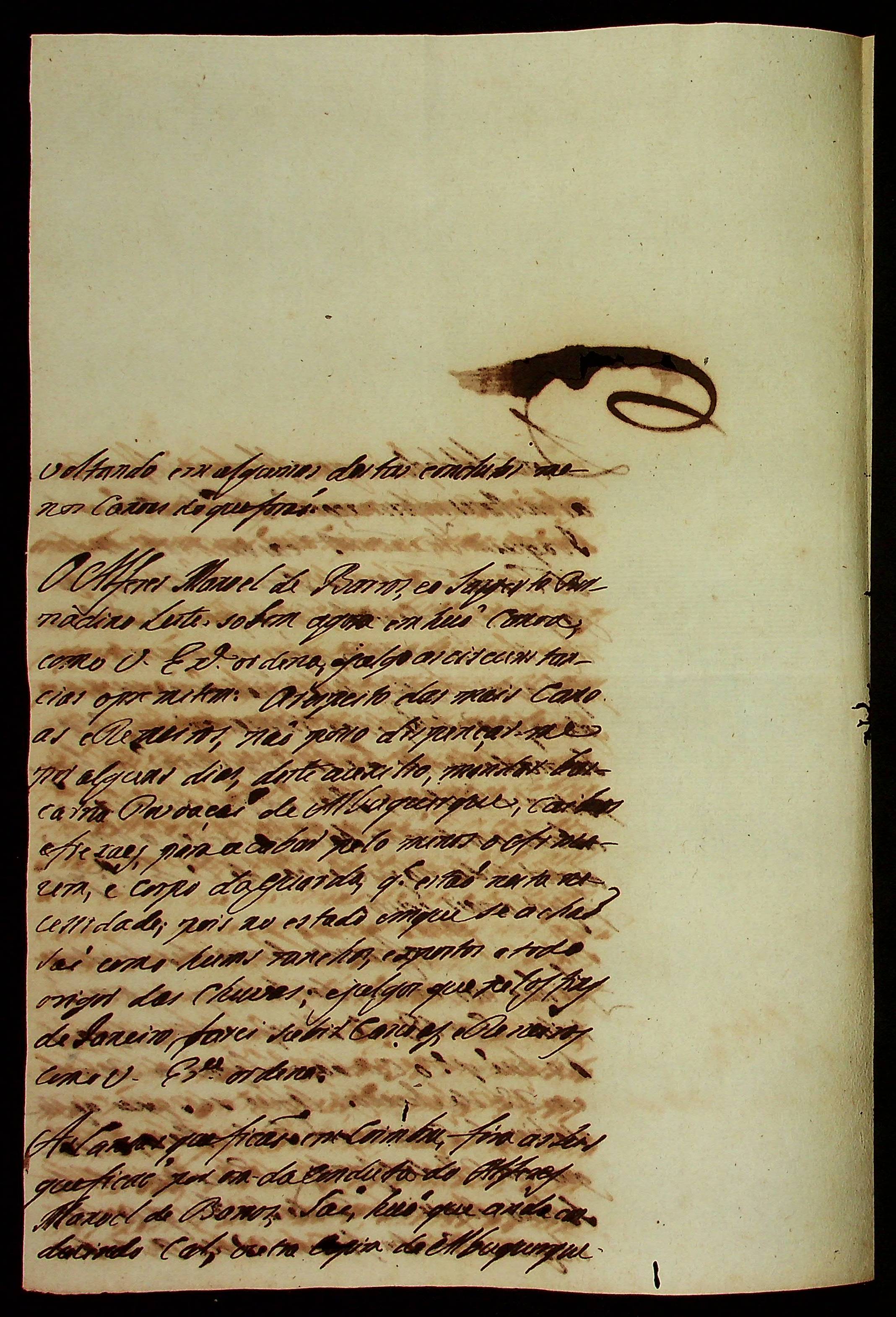 CARTA (incompleta) de [...] ao [Governador e Capitão General da Capitania de Mato Grosso].