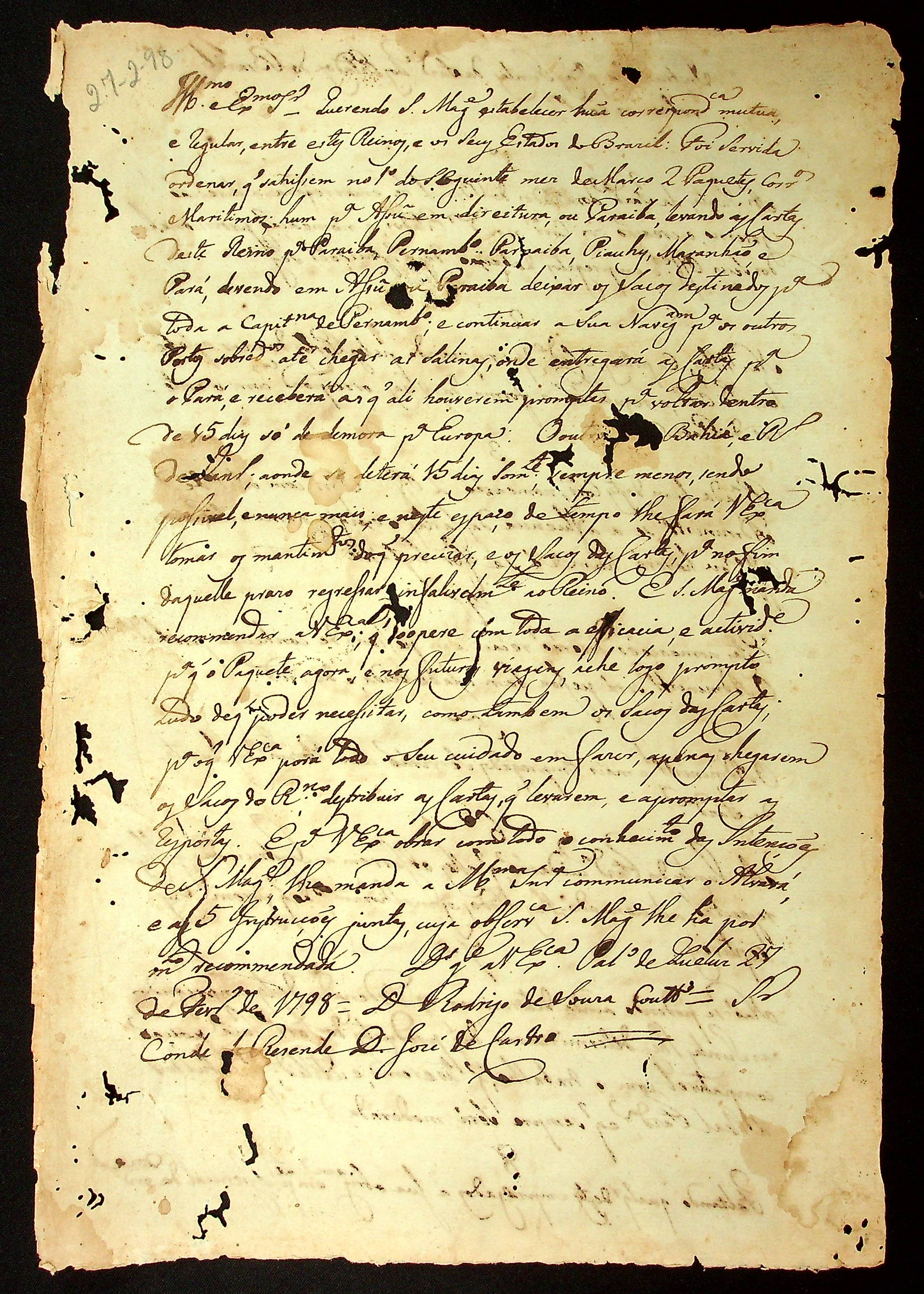 CARTA (cópia) Rodrigo de Souza Coutinho ao Conde de Resende.