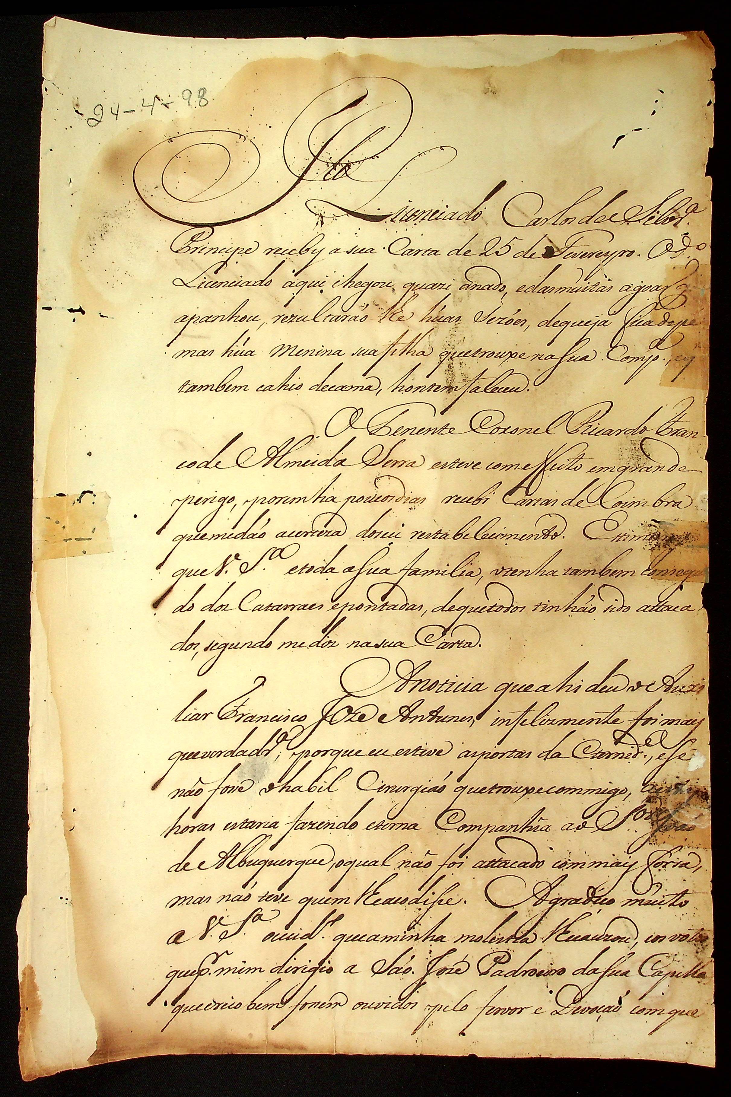 CARTA do [Governador e Capitão-General da Capitania de Mato Grosso] Caetano Pinto de Miranda e Montenegro ao Mestre de Campo José Paes Falcão das Neves.