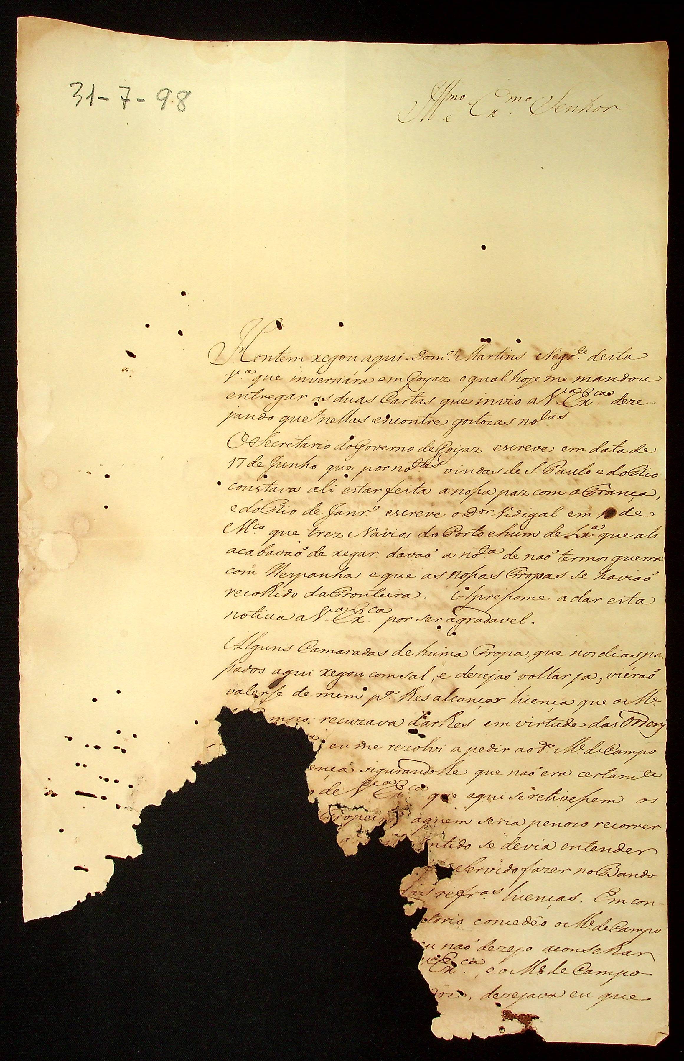CARTA de Luiz [...] ao [Governador e Capitão-General da capitania de Matogrosso] Caetano Pinto de Miranda e Montenegro.
