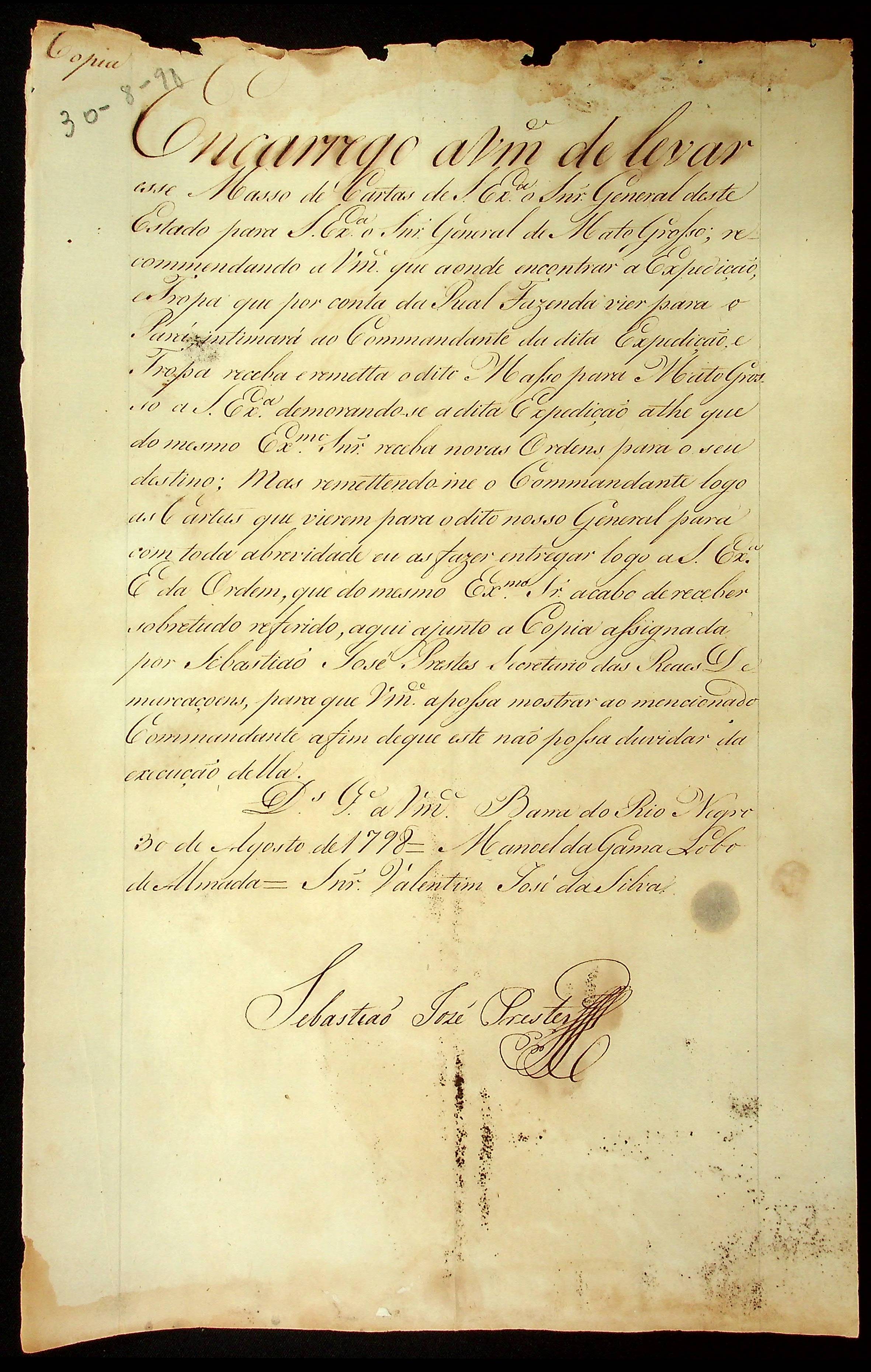 CARTA de Manoel da Gama Lobo de Almada ao [Governador e Capitão-General da capitania de Mato Grosso] Caetano Pinto de Miranda e Montenegro.