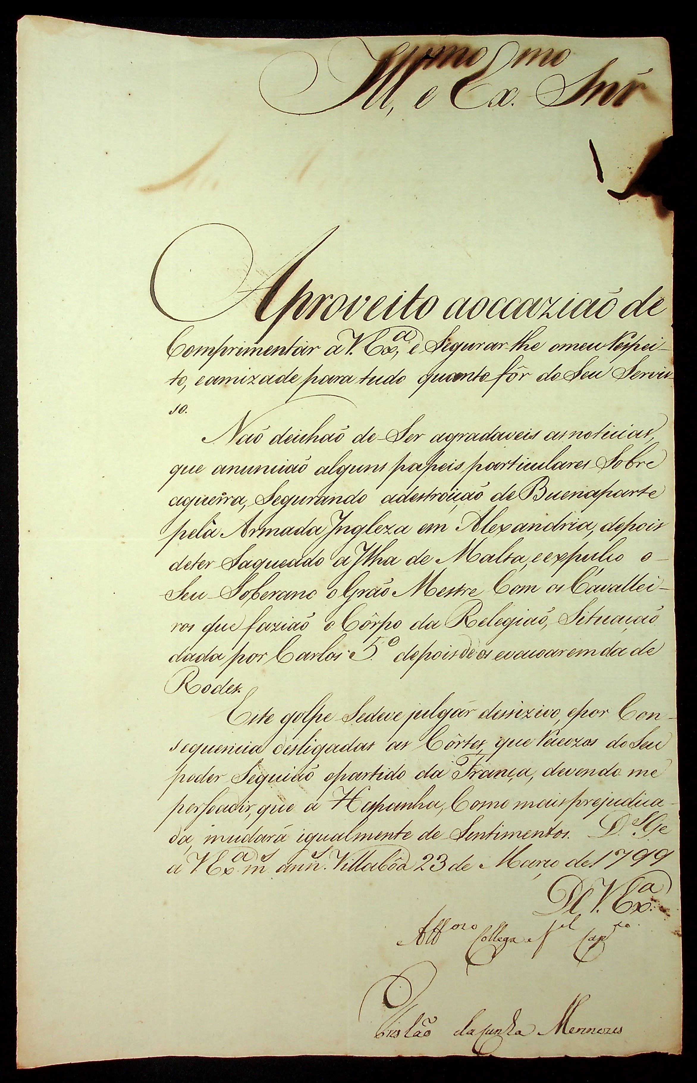 CARTA do [Governador e Capitão-General da Capitania de Goiás] da Cunha Meneses ao [Governador e Capitão-General da Capitania de Mato Grosso Caetano Pinto de Miranda e Montenegro].