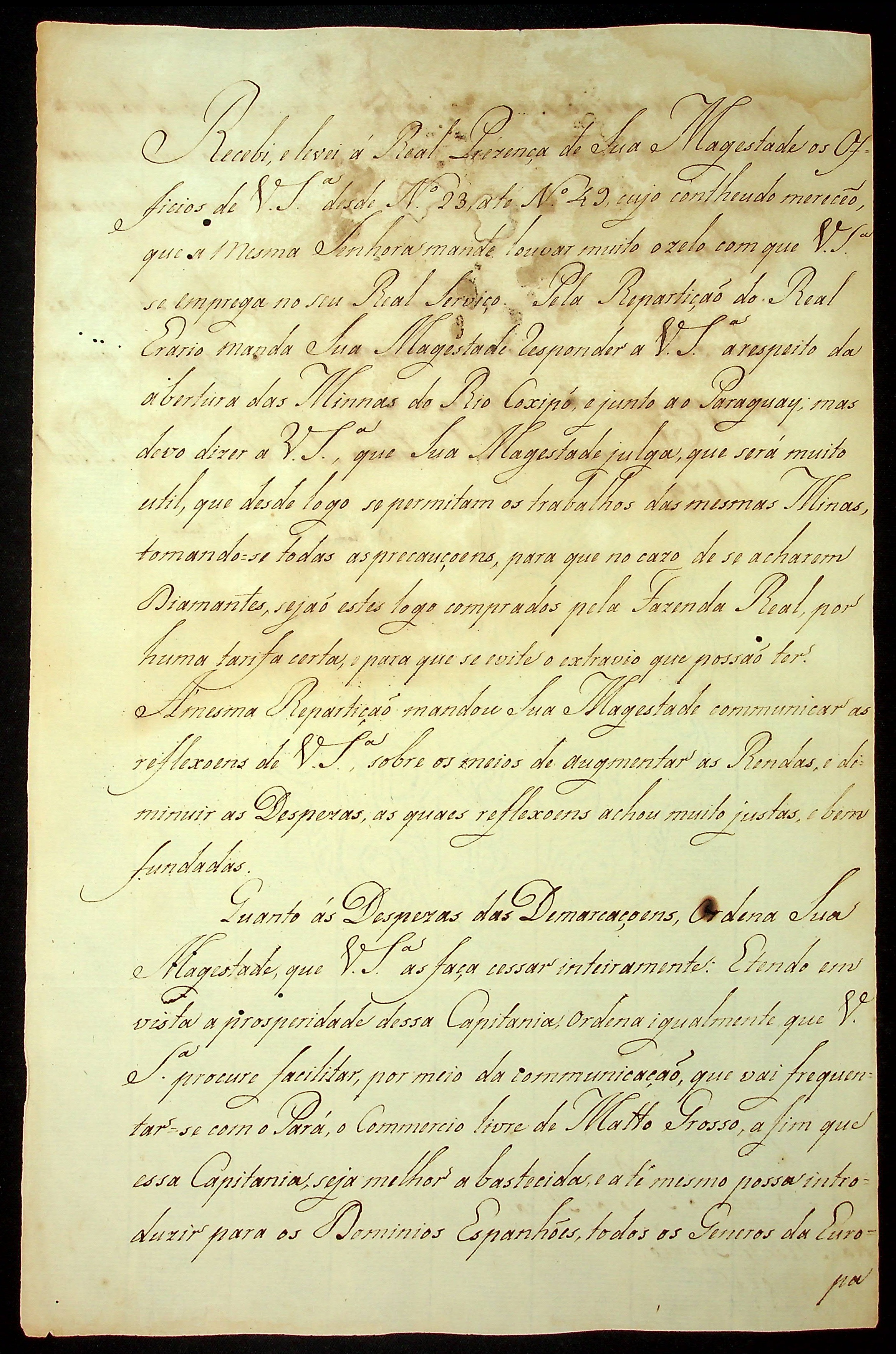 CARTA de Rodrigo de Souza Coutinho ao [Governador e Capitão-General da Capitania de Mato Grosso] Caetano Pinto de Miranda e Montenegro.