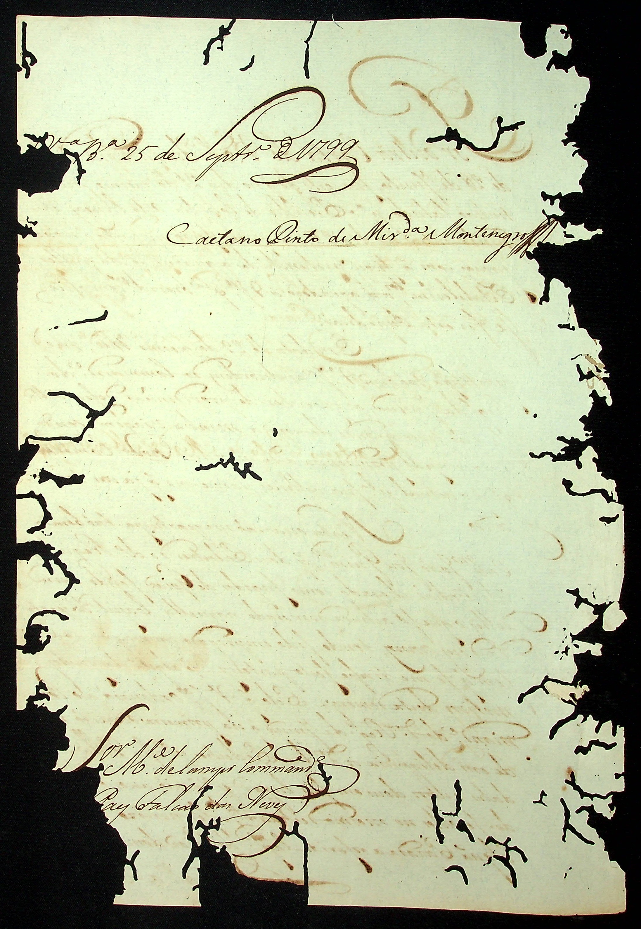 CARTA do [Governador e Capitão-General da Capitania de Mato Grosso] Caetano Pinto de Miranda e Montenegro ao Mestre de Campo Comandante José Paes Falcão das Neves.